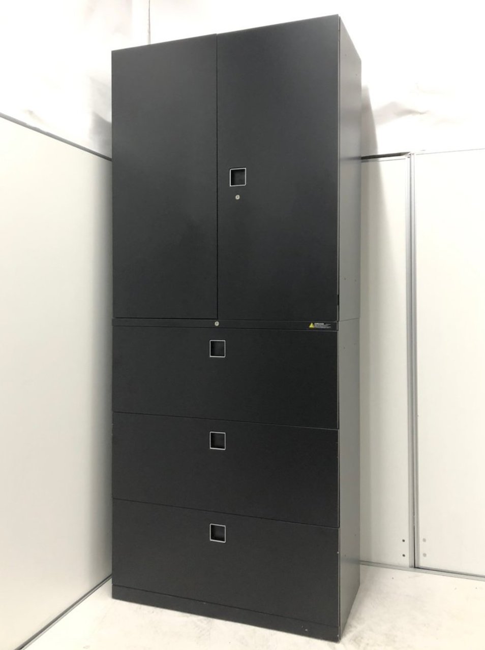 【スタイリッシュな空間を演出!】■オカムラ レクトラインシリーズ ■両開き+3段ラテラルキャビネット【レア商品】オールブラック!- 川崎店