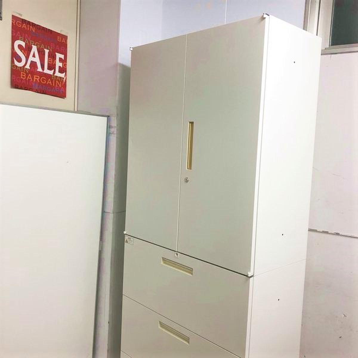 【1点価格特別価格】流行オフィスのホワイトキャビネット!鍵付き|- 名古屋千種店