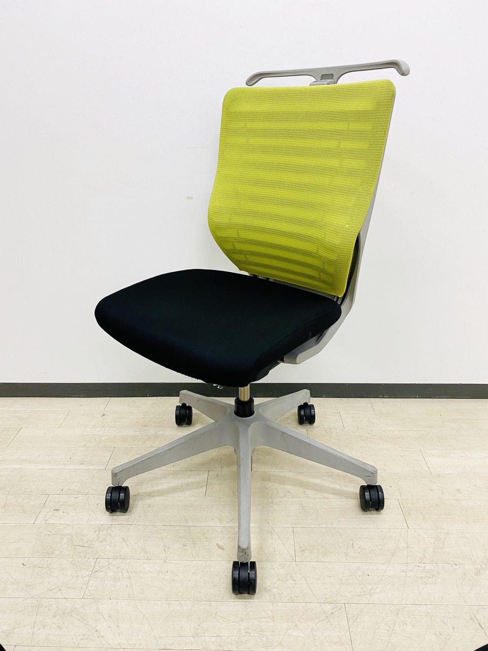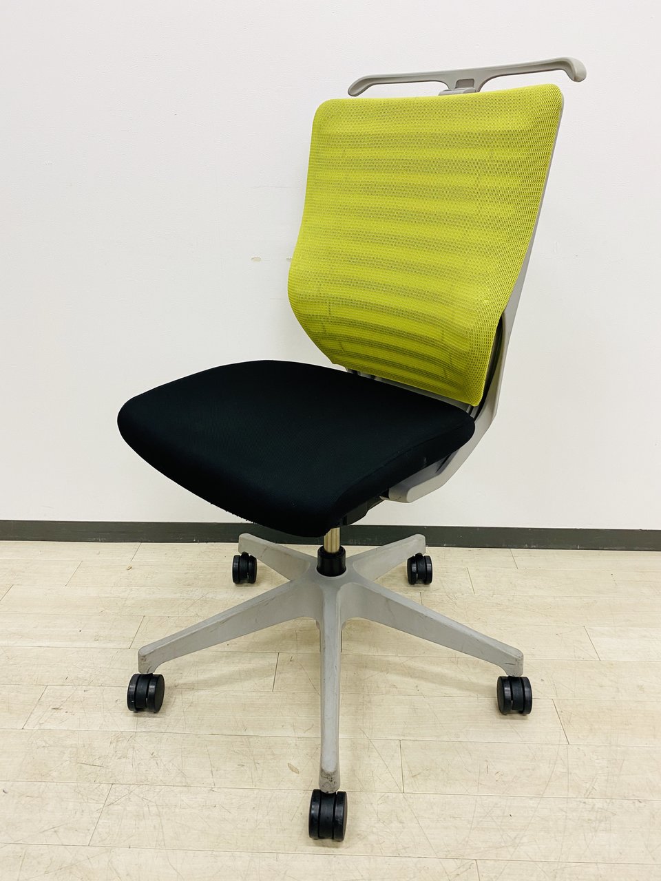 ■ITOKI/イトーキ ■エピオスチェア/EPIOS ■背面/グリーン 座面/ブラック ■背面/メッシュ 座面/布 ■肘無 ■ローバック ■ハンガー付【弊社使用欄:A01042683】