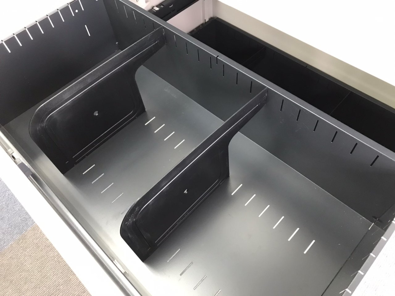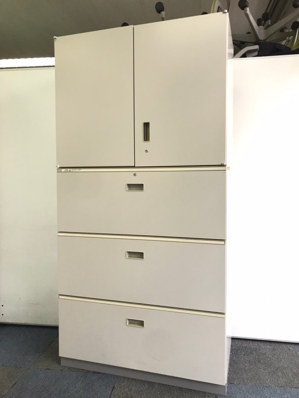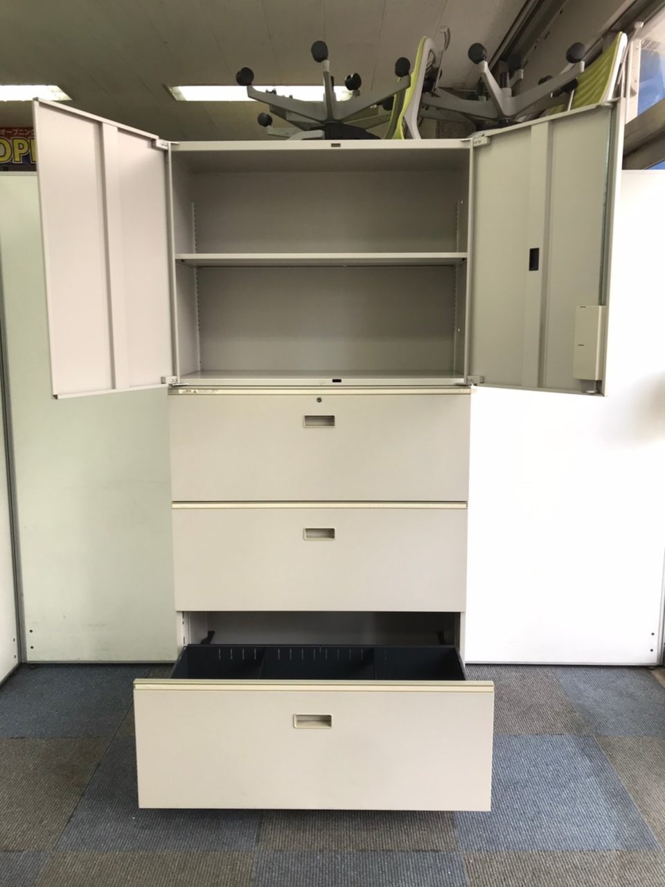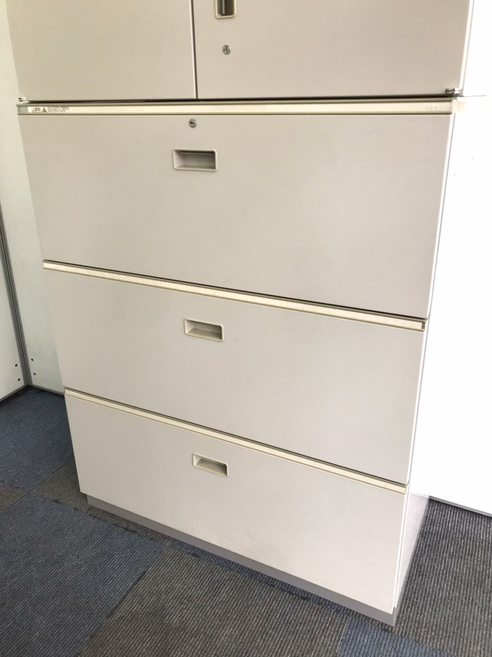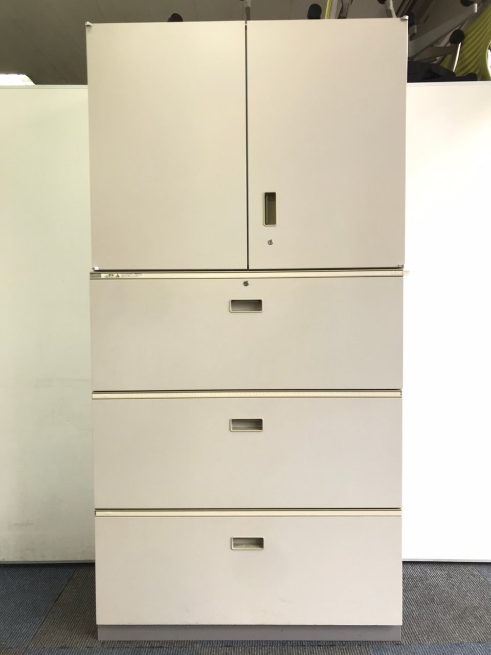 - 一部不具合ありそ引出の開閉不可、施錠不可、棚板無しといったの書庫の本来の効用を果たすための機能以外の一部が使用不可(例、扉、引出の開閉がしづらいなどがある。 )