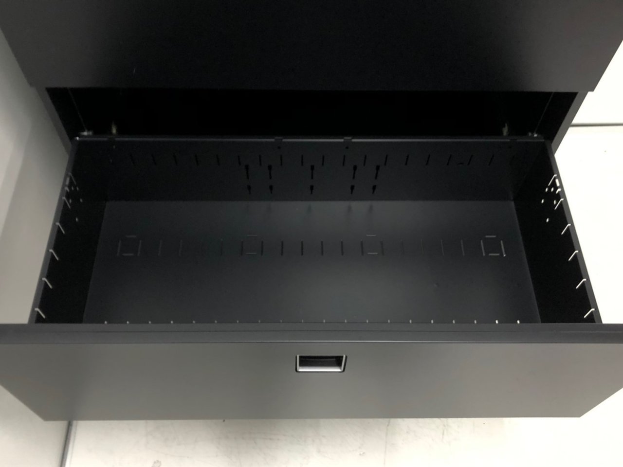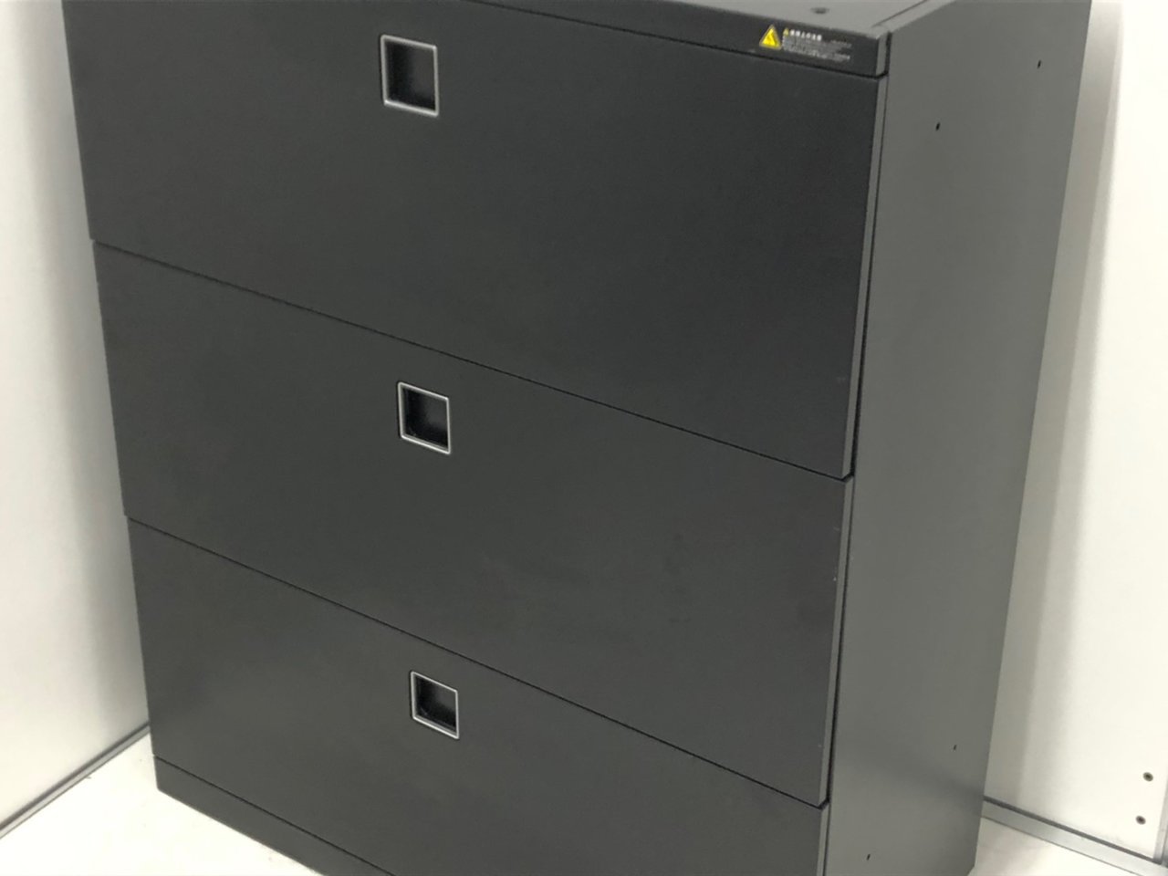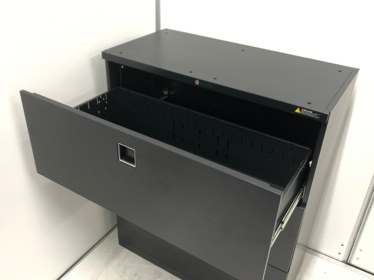 【超レアなブラック色!】オカムラ製/レクトラインシリーズ珍しいブラックカラー/ブラウン天板付き/3段ラテラル【BKNA】