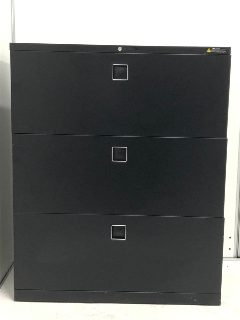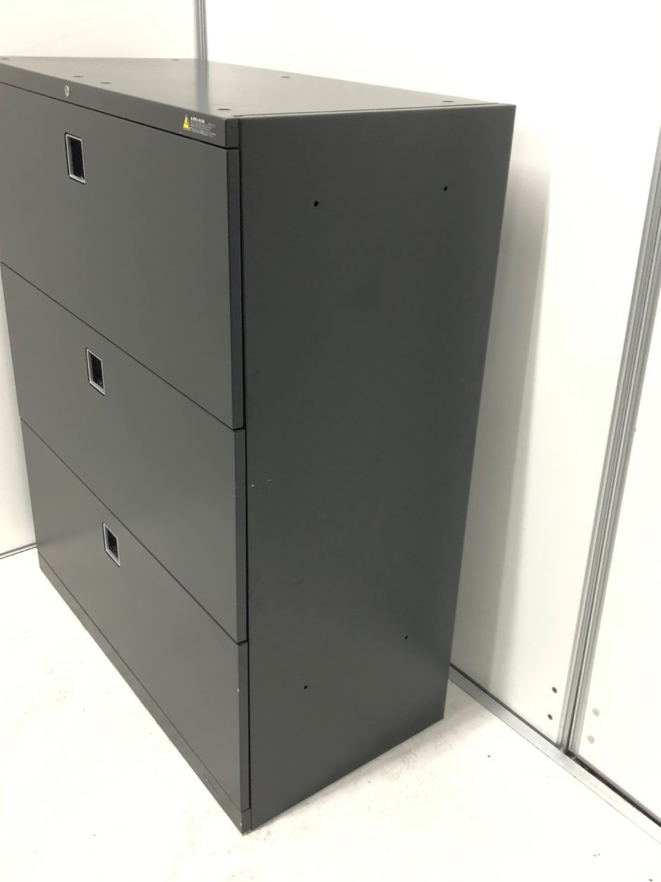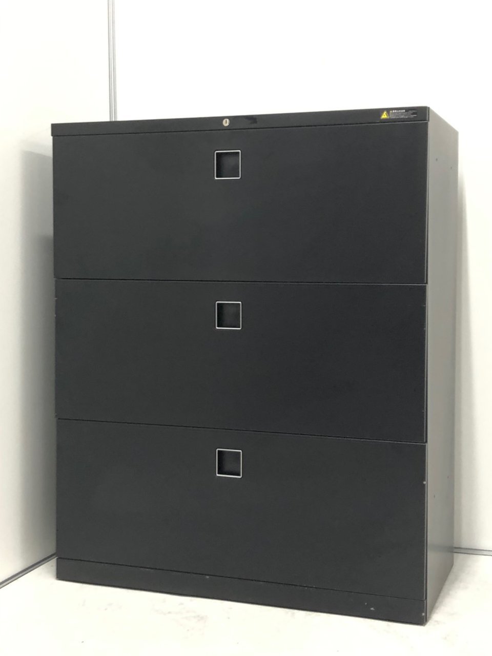 【超レアなブラック色!】オカムラ製/レクトラインシリーズ珍しいブラックカラー/ブラウン天板付き/3段ラテラル【BKNA】
