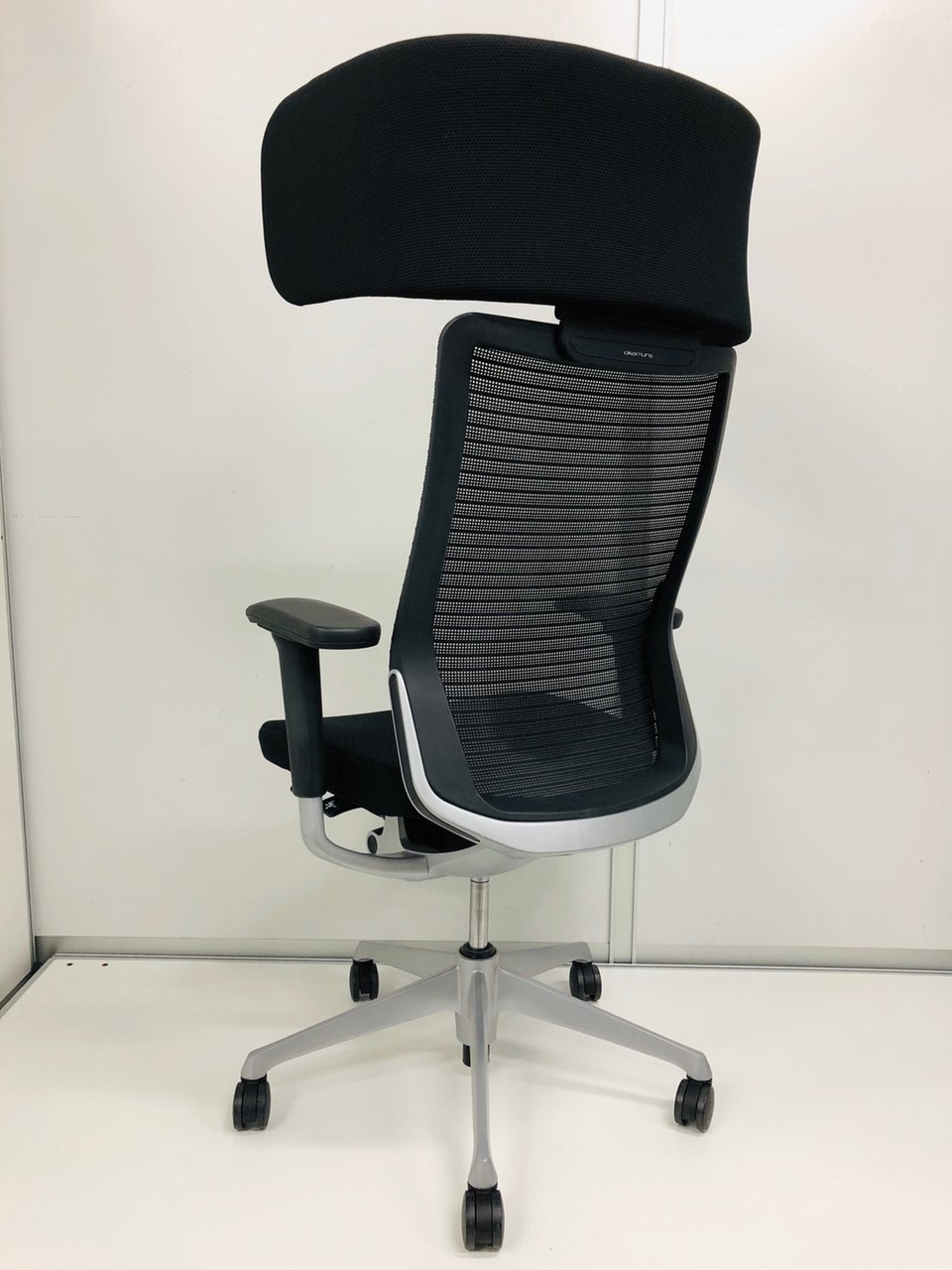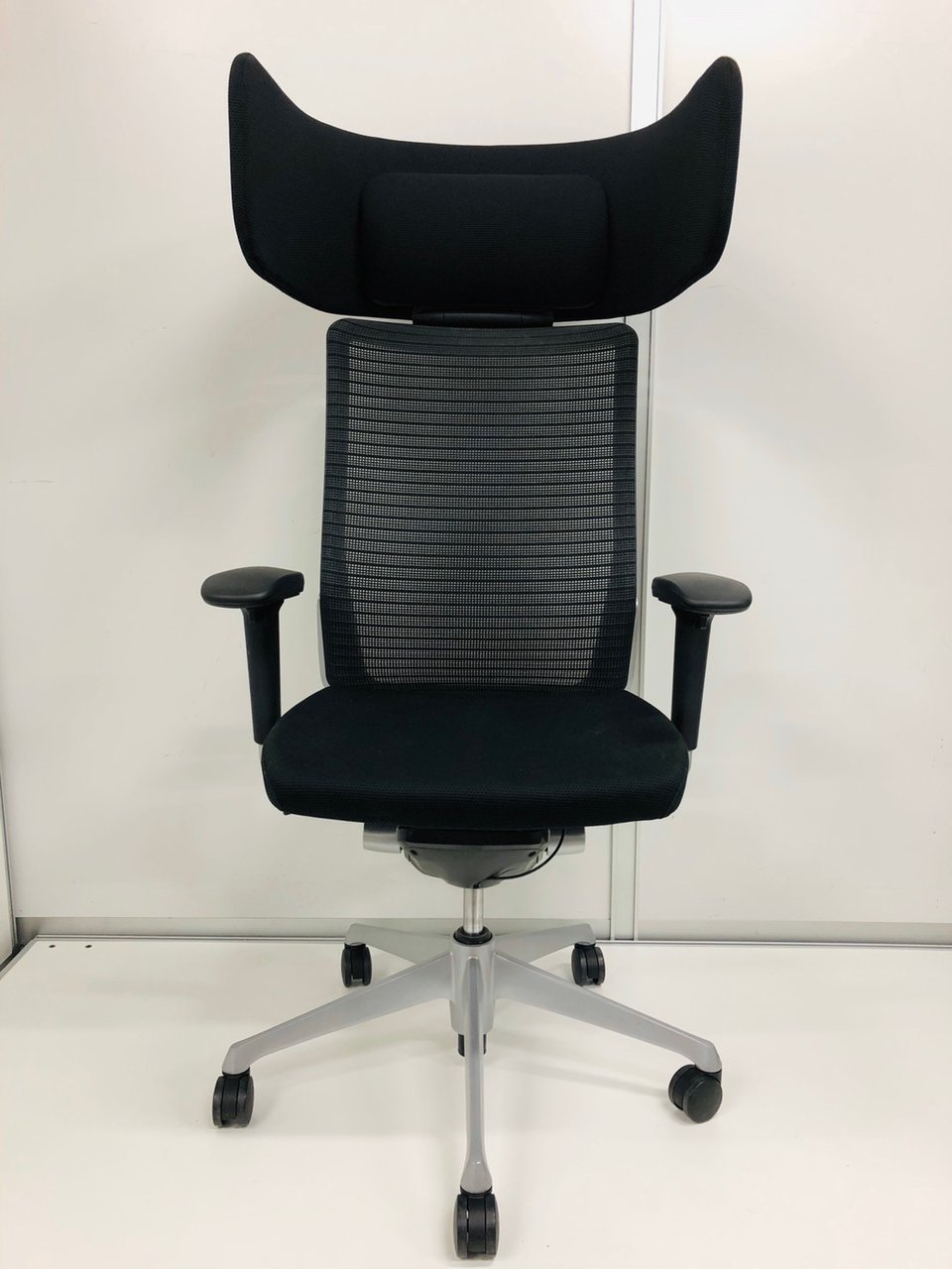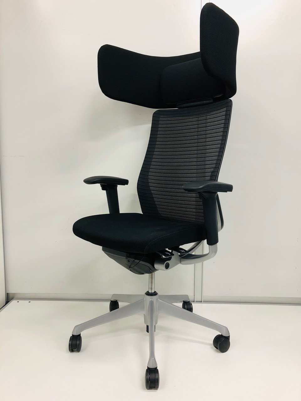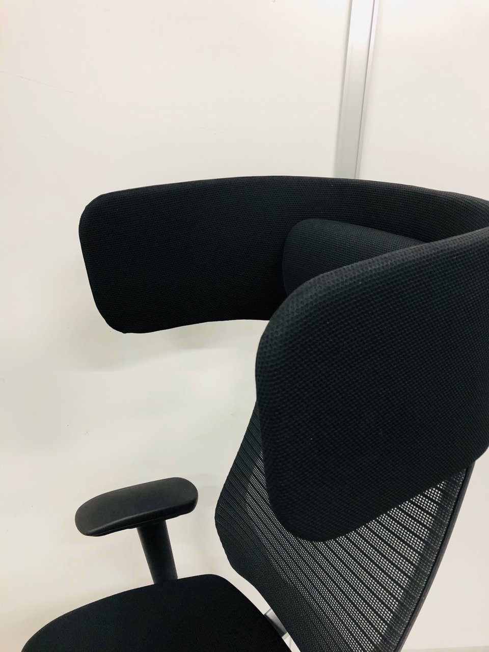 【先行商品!】【機能性抜群の人気チェア!自然な姿勢をサポートするアンクルチルトリクライニング搭載!】■オカムラ(okamura)製 コーラルチェア(Choral) 肘付 エクストラハイバックチェア ファブリックタイプ ■可動肘・ヘッドレスト付 ■ブラック