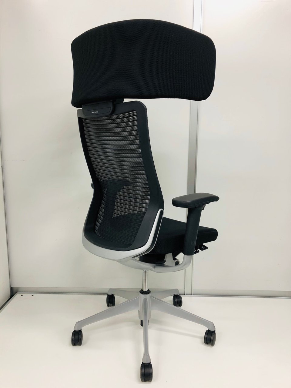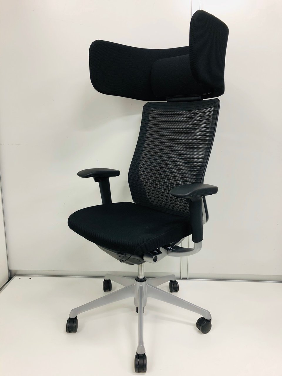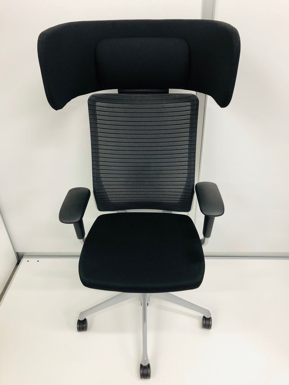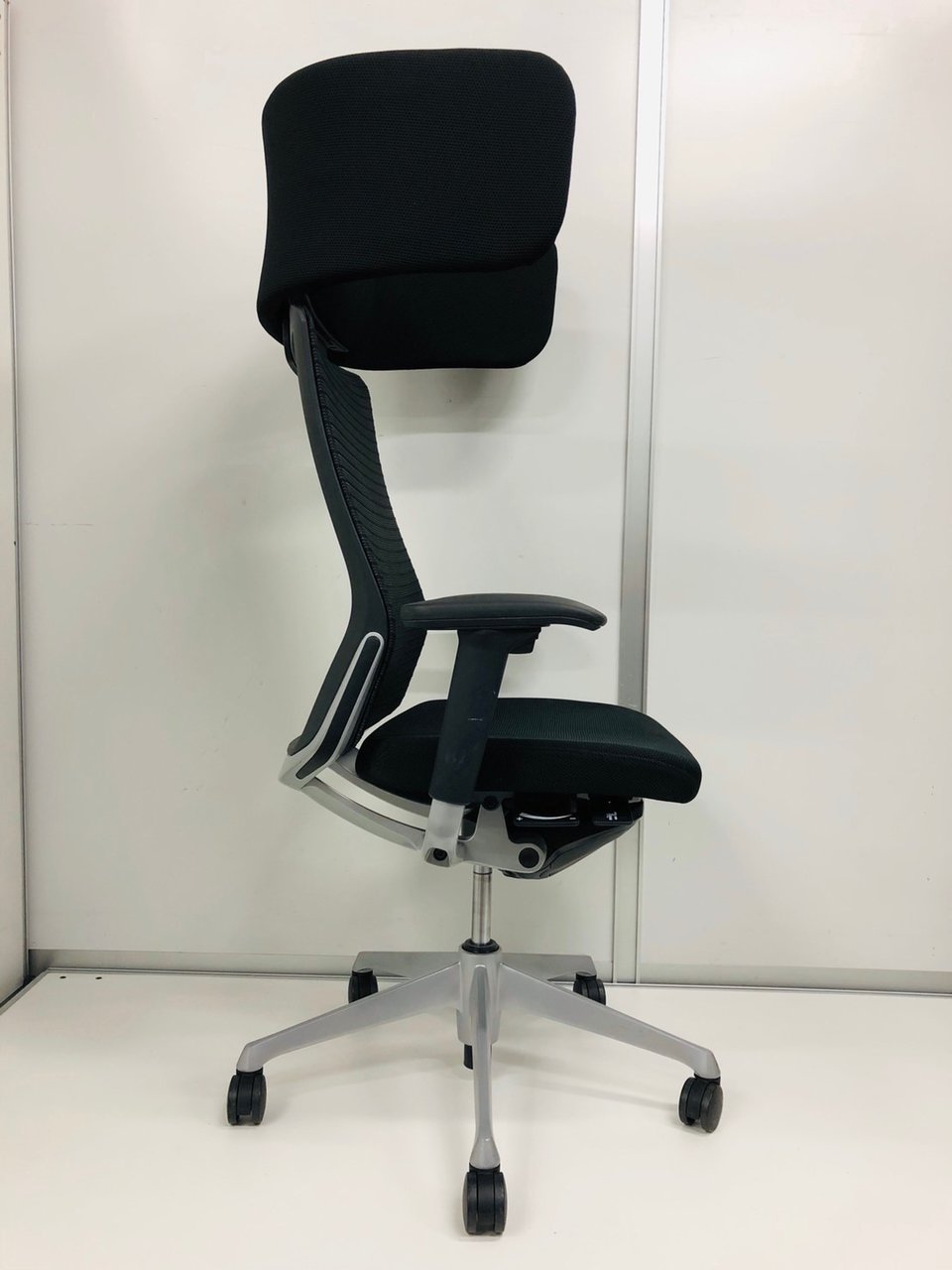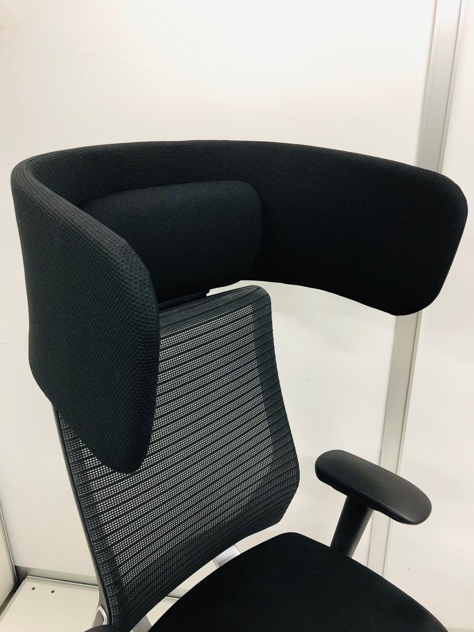 【先行商品!】【機能性抜群の人気チェア!自然な姿勢をサポートするアンクルチルトリクライニング搭載!】■オカムラ(okamura)製 コーラルチェア(Choral) 肘付 エクストラハイバックチェア ファブリックタイプ ■可動肘・ヘッドレスト付 ■ブラック