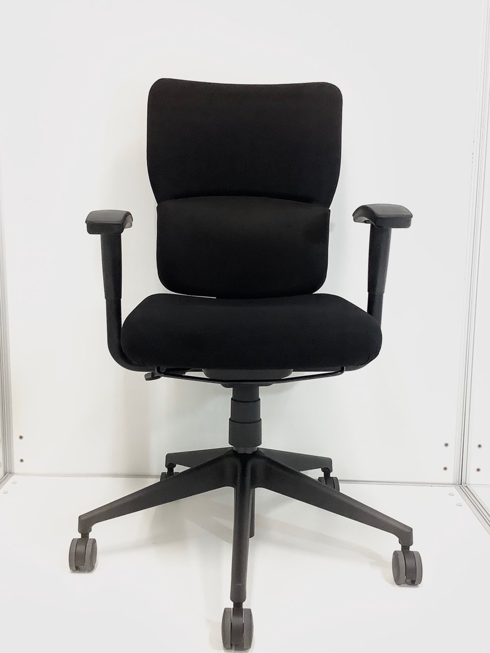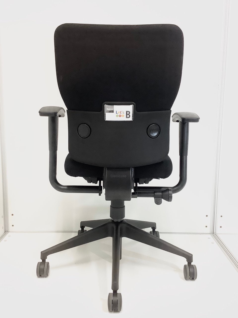 【貴方の体に合わせてフィットする調整機能搭載!】■スチールケース レッツビーチェア 可動肘肘付 ブラック ■背もたれを上下に調整できます!【Steelcase LetsB】