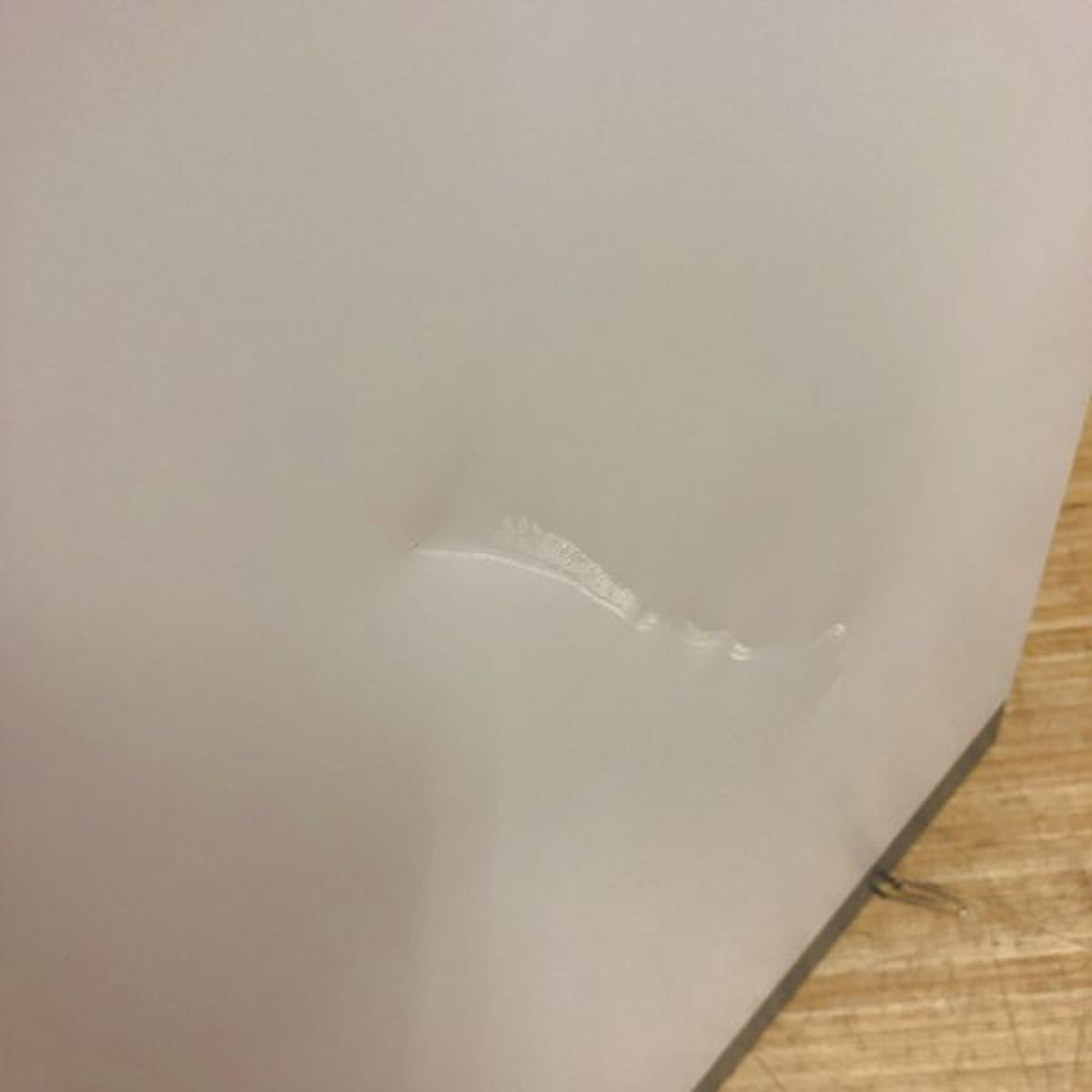 - あり黄ばみ・変色が広い範囲にうっすらある、または濃い黄ばみ・変色が一部ある。(例、天板、正面、背部、サイド部分にある。)
