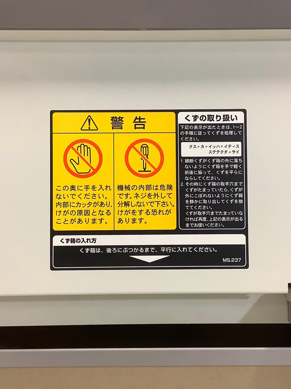 こちらを目安にシュレッダーをお使いいただければと存じます。