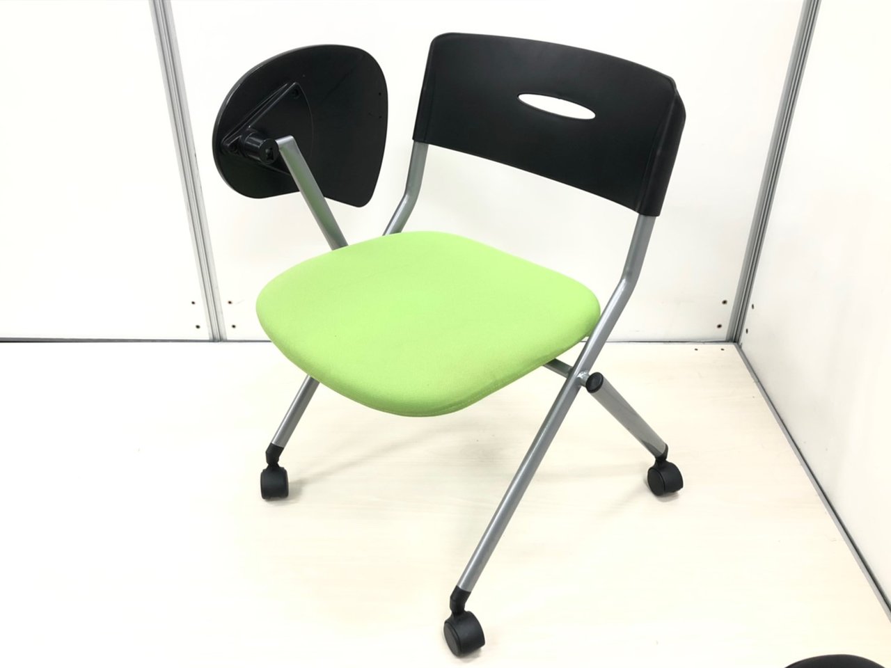 【メモ台付き】【レア商品】ライトグリーン/ネスティングチェア【テーブルいらずのミーティングチェア】- 池袋店