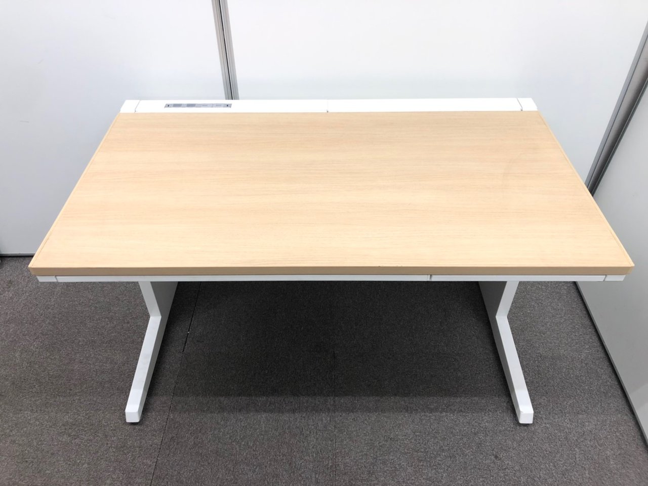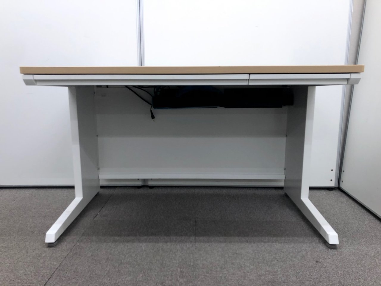 【定価約9万円】【ワイヤリング機能が充実!清潔感のあるホワイトカラーにおしゃれなナチュラル天板の平机!】■オカムラ(okamura)製 アドバンスシリーズ(ADVANCE) 平机 引き出し付き 幅1200㎜ ■天板:ナチュラル / 本体:ホワイト
