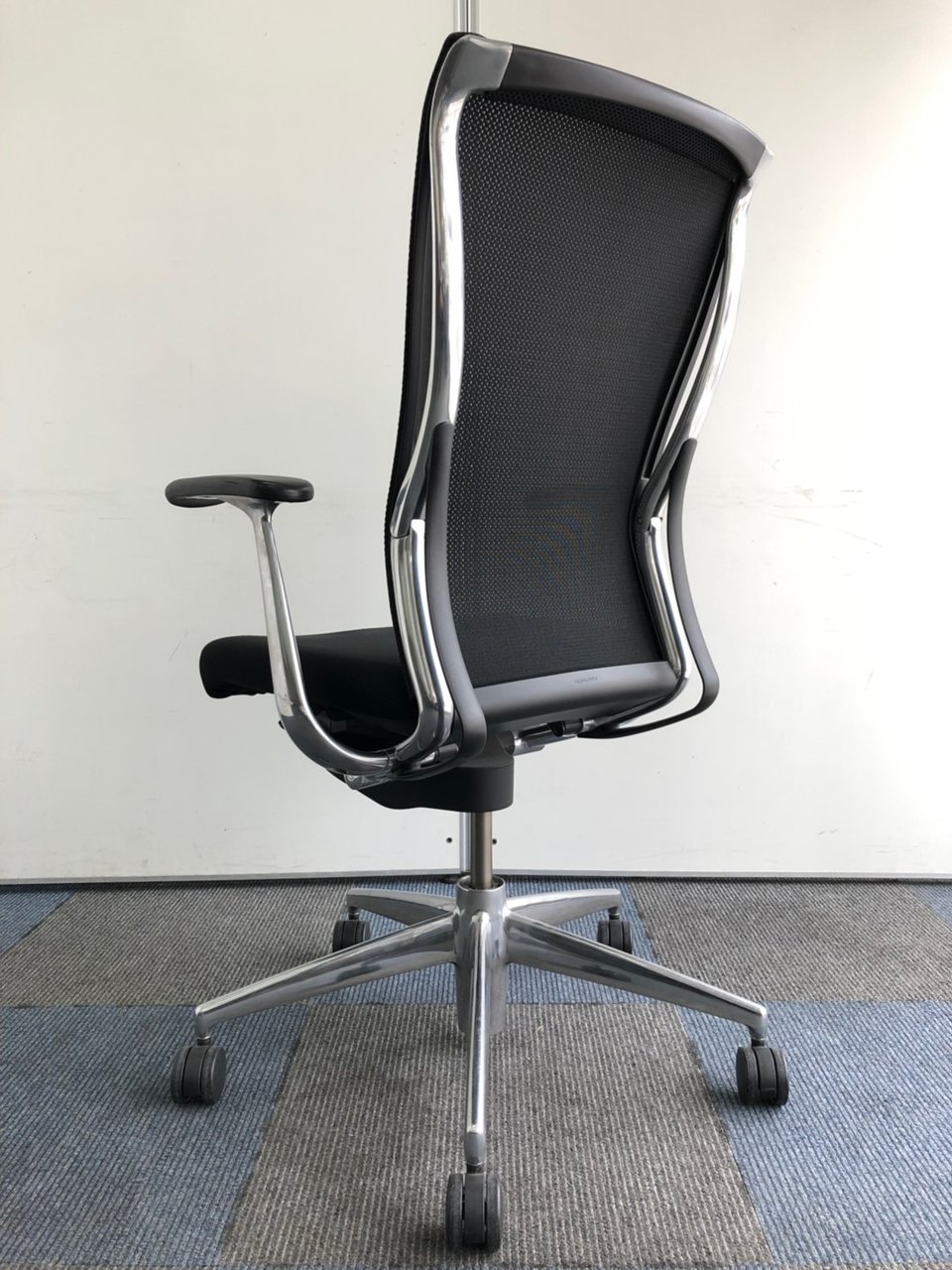 - 大きな曲線を描くフレームと表裏で見え方が変わる特殊メッシュで構成された背もたれ、そして2層構造の技術によって実現できた快適ながらも薄い座面は、先進的でありながらも柔らかさのあるスタイリッシュなデザインを実現しています。