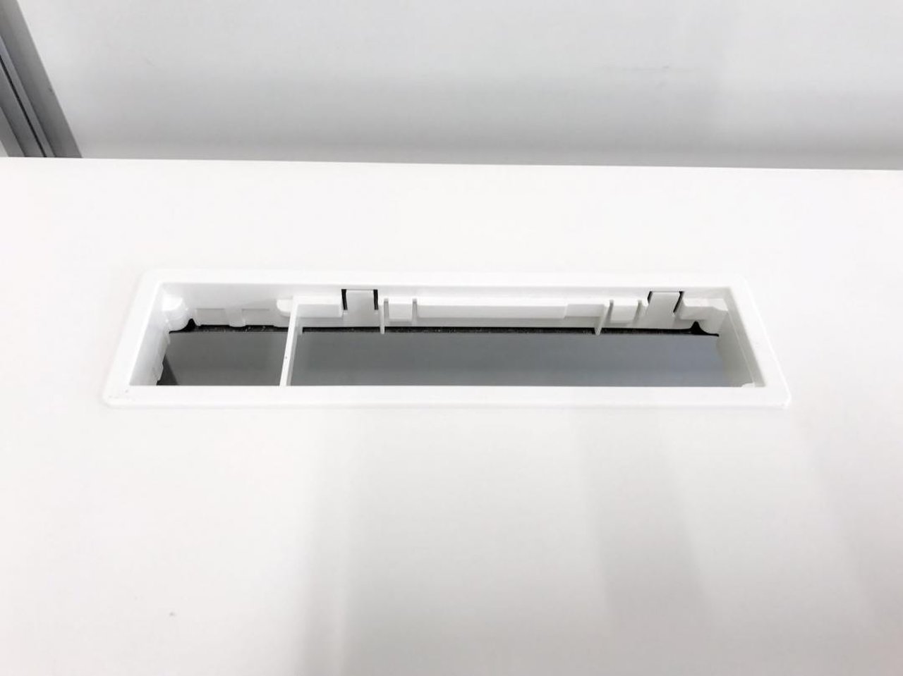 - 机の角がシャープなので、隣り合うデスクがフラットにつながります。すっきりとしたデザインです。