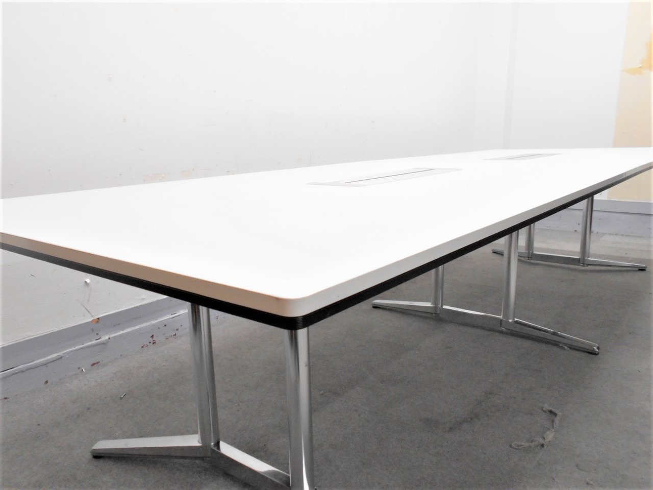 【ワンランク上のカンファレンス空間を演出!】■オカムラ ラティオシリーズ 会議用テーブル W3200mm(8~12名用) 配線ボックス付 ホワイト 【Okamura RATIOⅡ】