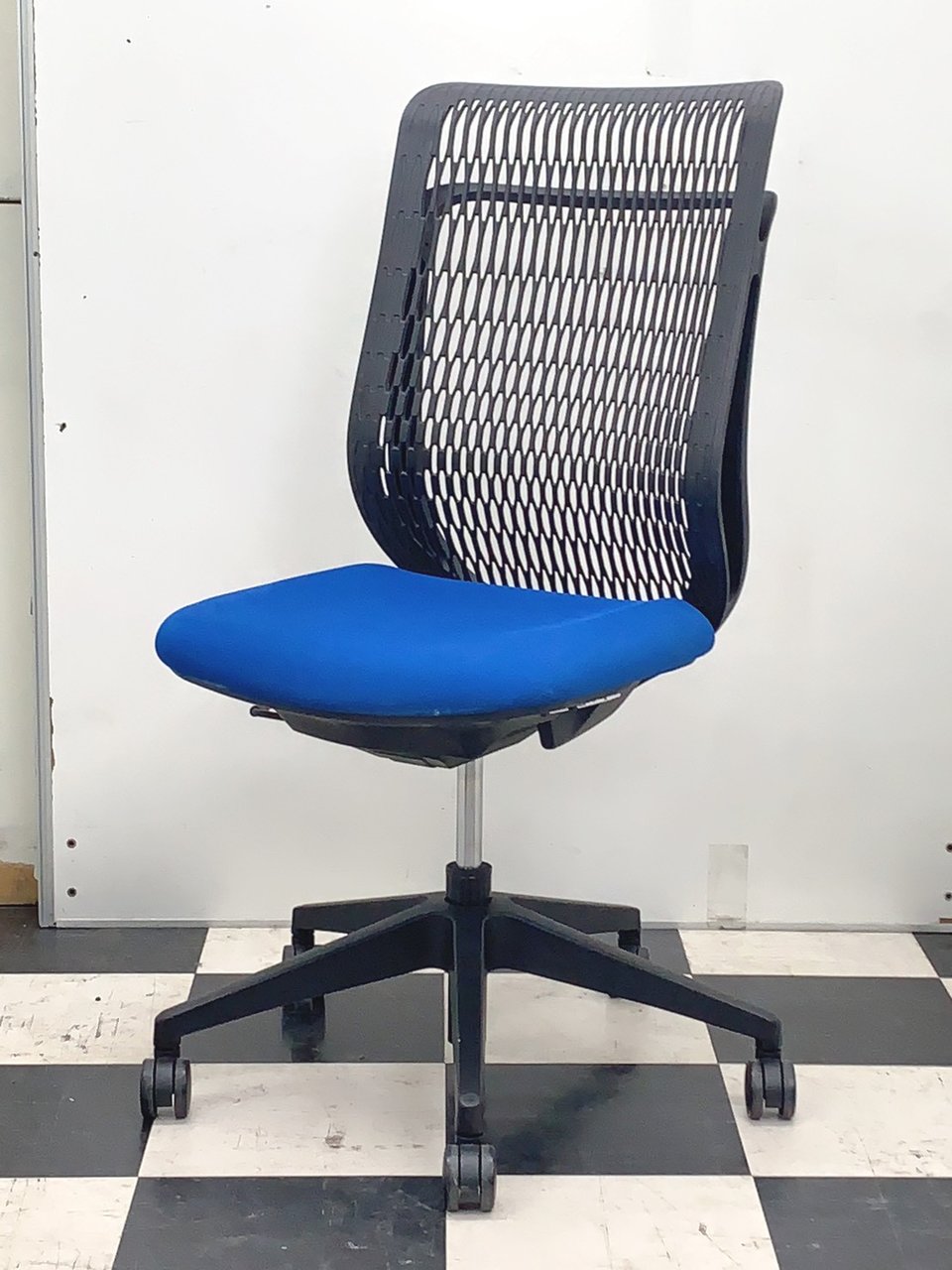 オフィス定番のブルーカラーと人気メッシュの組み合わせ。