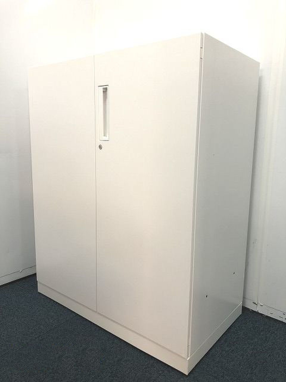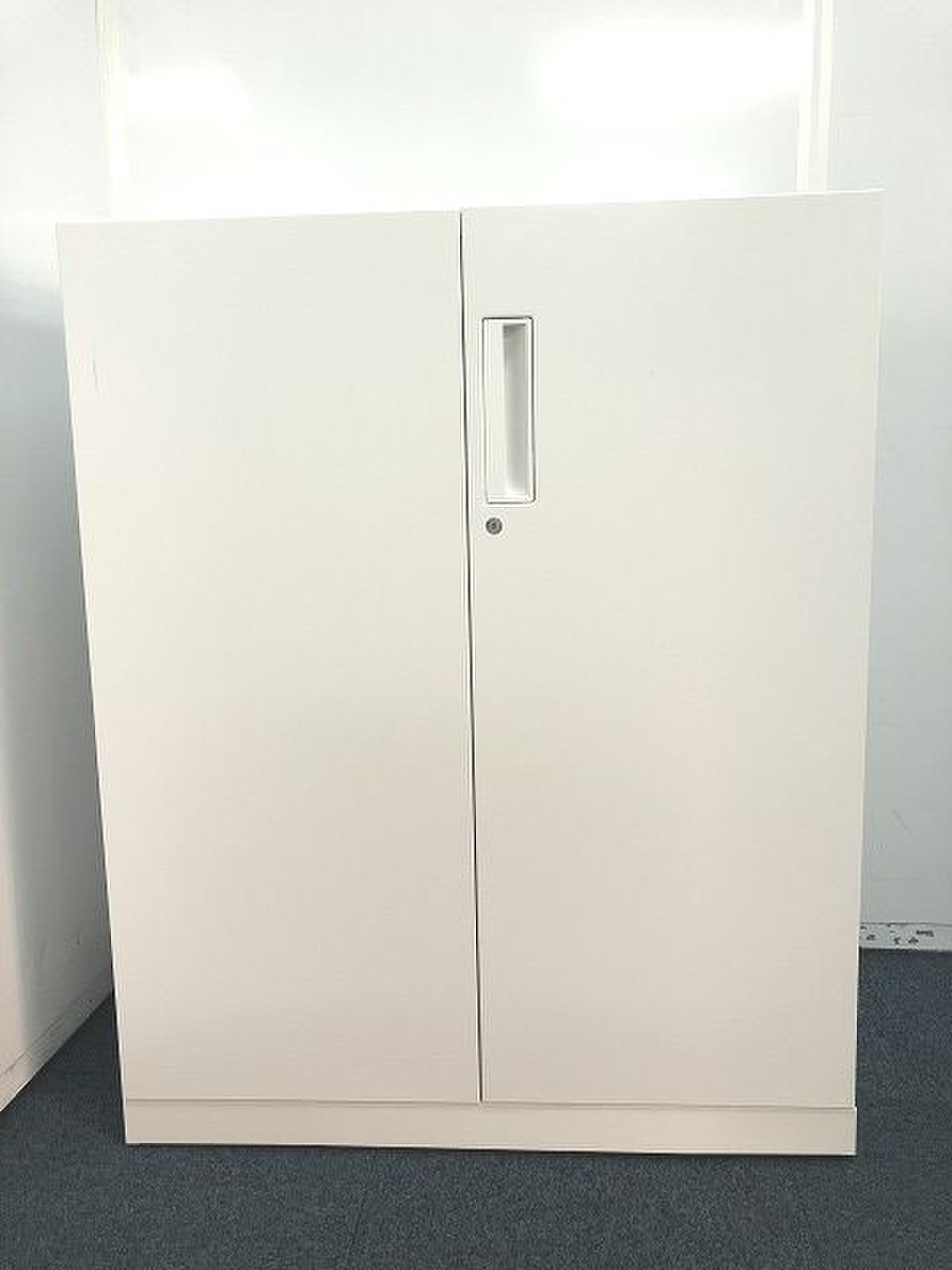 【収納物がひとめで分かる両開き戸タイプ!】■コクヨ(KOKUYO)製 エディア(EDIA)シリーズ 両開き書庫 ローキャビネット H1130㎜ ■天板・ベース付 ■ホワイト ■シリンダー錠
