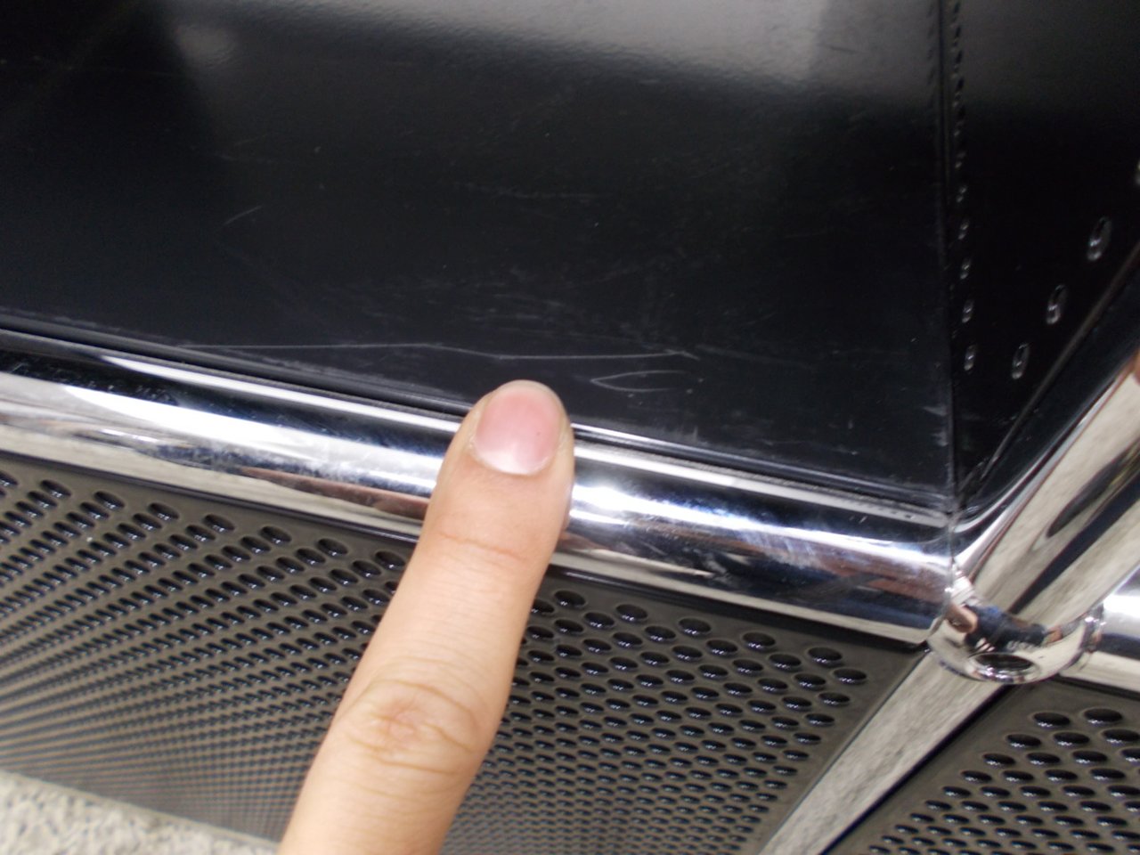 - 目立つ箇所あり傷・凹みが多数、深い傷・凹みが一部ある。(例、天板、正面、背部、サイド部分にある。)