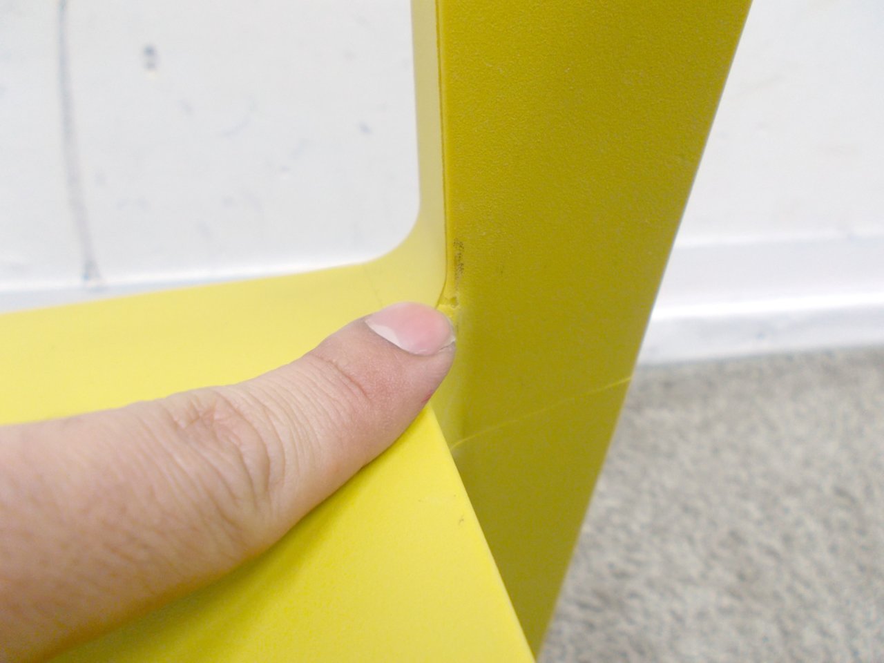 - かなり強い濃い黄ばみ・変色が商品全体にある。(例、座面・背もたれ、脚部等にある。)