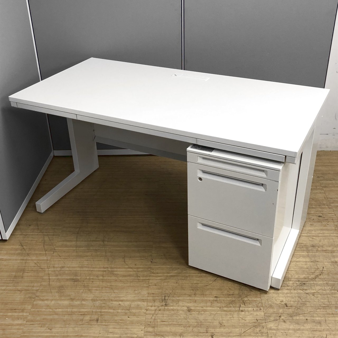 平机 内田洋行 スカエナ(SCAENA) 配線:Ktype(開閉式のカバータイプ) ホワイト天板 引き出し付き ゆったりつかえるW1400サイズ