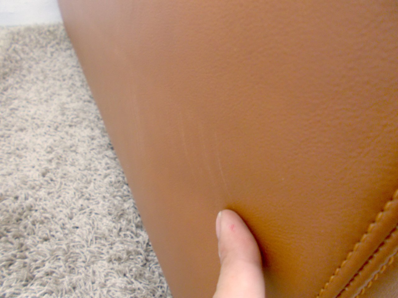 - 目立つ箇所ありソファの場合、破け、ホツレ、へたり、しわ等が多数または深い破け、ホツレ、へたり、しわ等一部ある。(例、背もたれ、肘かけ、座面等にある。)センタ>ーテーブルの場合、傷・凹みが多数または深い傷・凹みが一部ある。(例、天板、脚にある。)