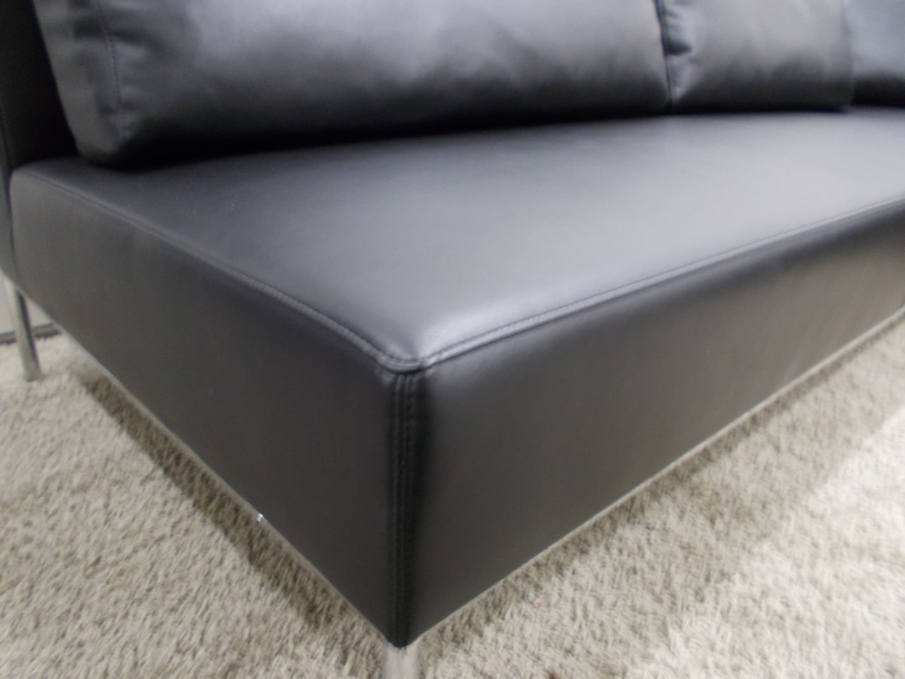 クロームメッキの水平に伸びるラインが印象的な脚は、スクエアスタイルのソファに程よい緊張感を与えます。