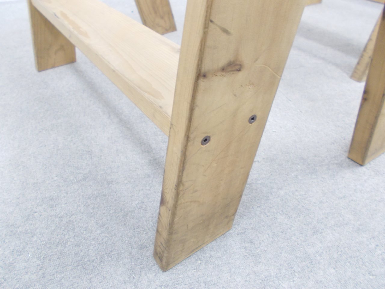- 目立つ箇所あり傷・凹みが多数、深い傷・凹みが一部ある。(例、天板、幕板、棚板、サイド部分、脚部等にある。)