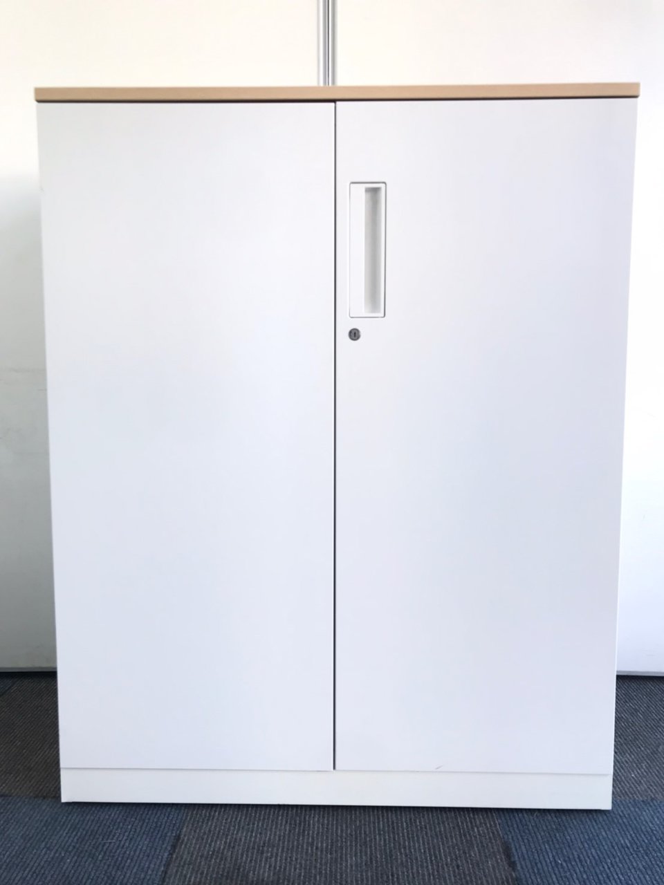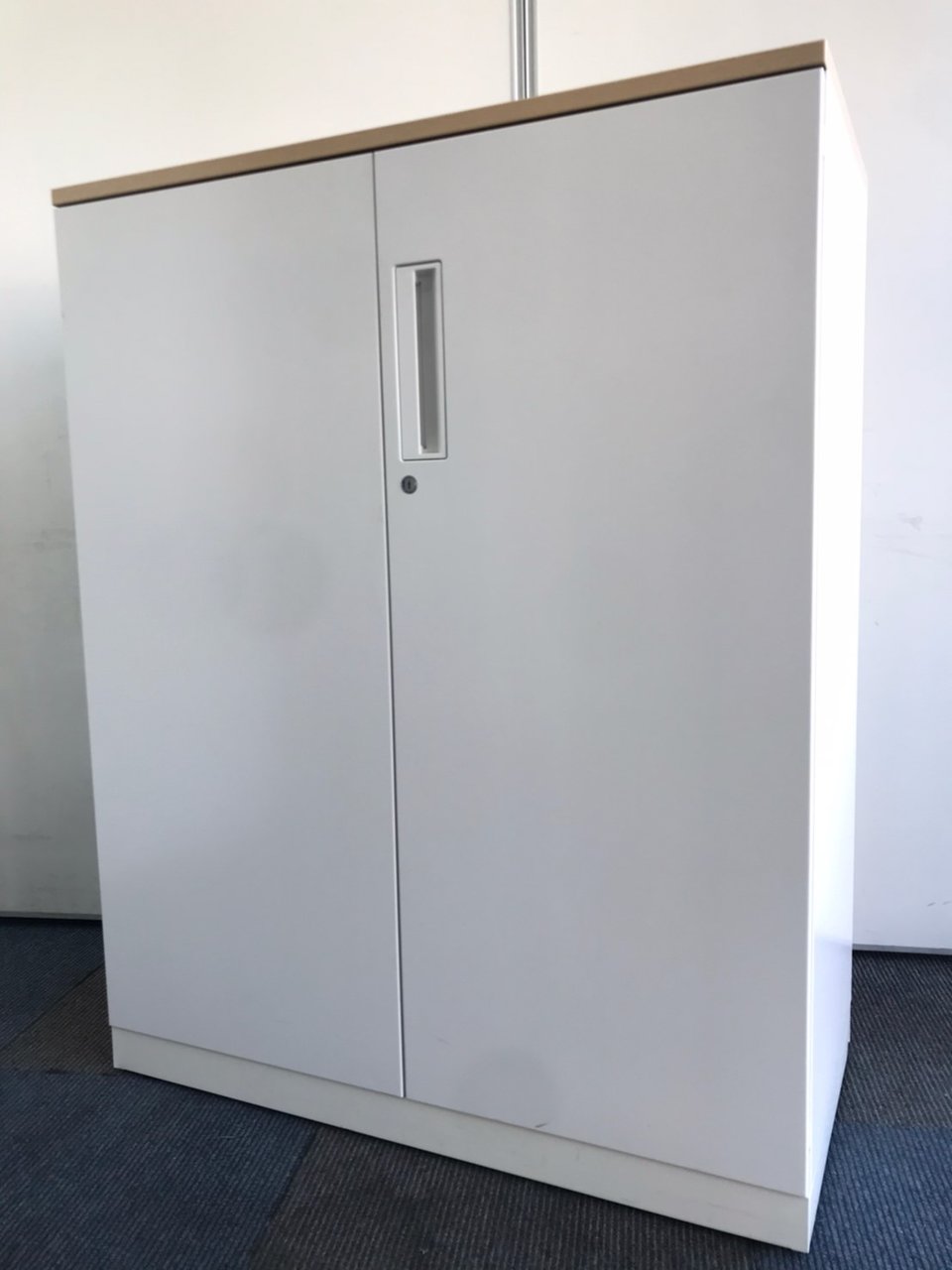 【収納物がひとめで分かる両開き戸タイプ!】■コクヨ(KOKUYO)製 エディア(EDIA)シリーズ 両開き書庫 ローキャビネット H1130㎜ ■天板・ベース付 ■ホワイト ■シリンダー錠