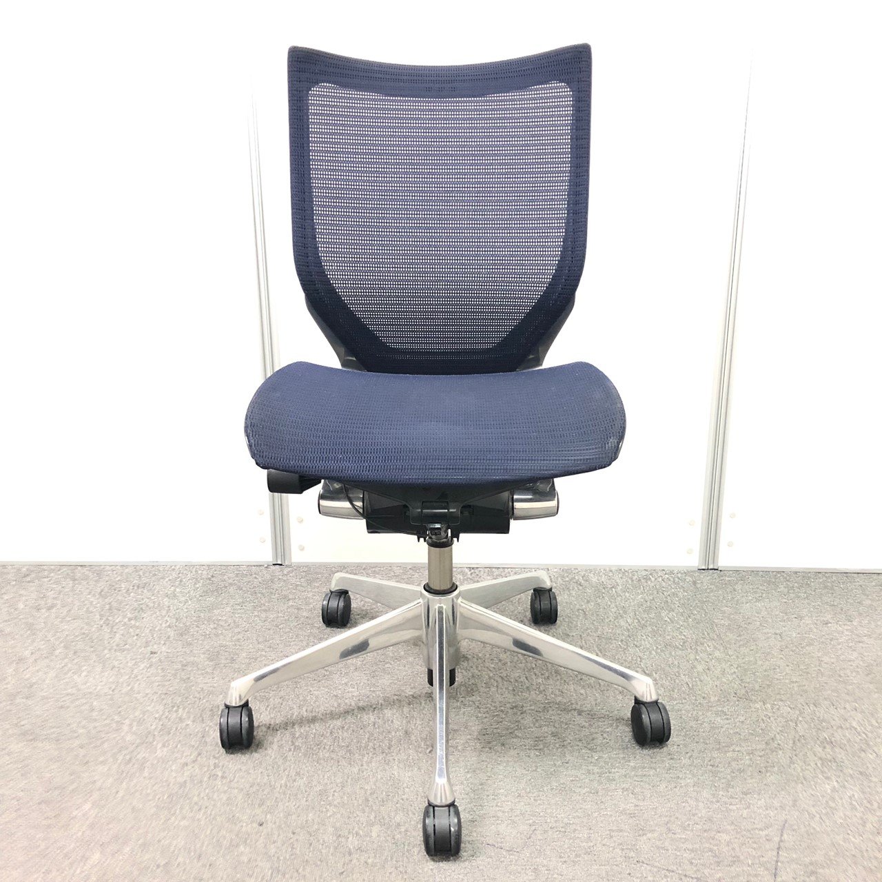 【在庫入替セール品】【オフィスの執務室、会議室におすすめ!】■オカムラ(okamura)製 バロン(Baron)チェア ローバック 肘無し ■背面メッシュ ■色:ダークブルー【国産メッシュチェアの代表格!】