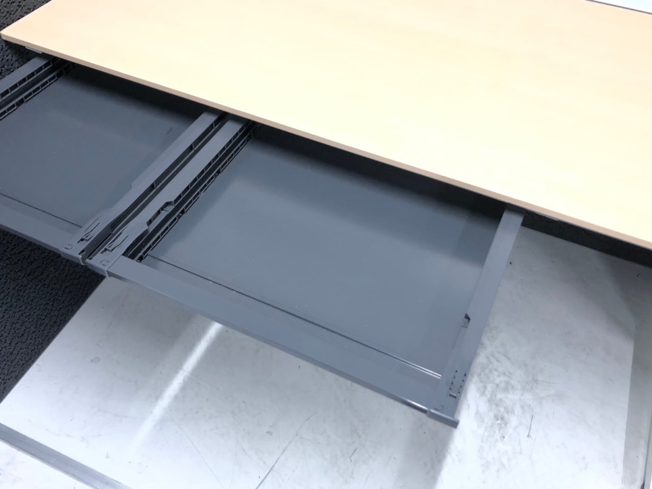【在庫入替セール】【上長デスクの定番W1400平机!配線カバーも充実の高品質デスク!】■コクヨ(KOKUYO)製 iSシリーズ 引き出し付き(右側の引き出し無し) 平机 ■ホワイト×ナチュラル天板【T9】