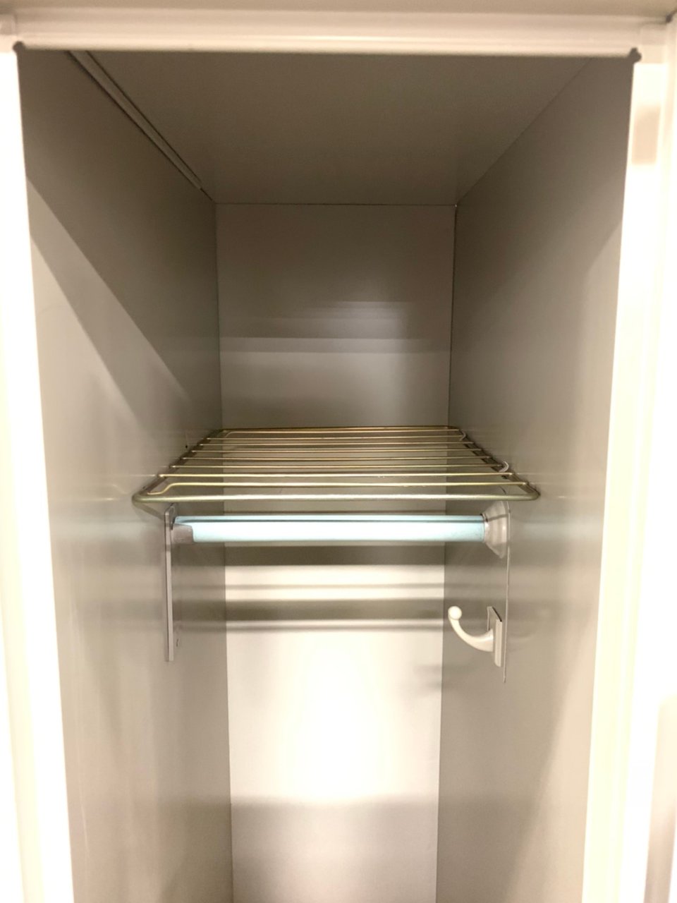- 完備鏡、ネクタイ掛け、傘立て、網棚、フック等が全て完備されている。