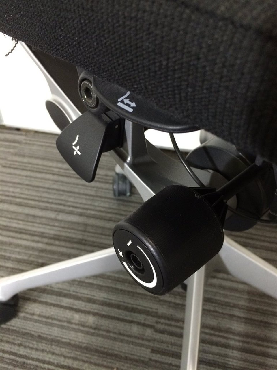 気に入っているのはリクライニング調整の自由さです。同じオカムラ社製の上位モデルや下位モデルも、角度が5段階程度の固定位置だったり、リクライニング強度も4段階だったりしますが、バロンチェアはどちらも無段階。つまり完全に好きな位置、好きな強度に調整することができます。