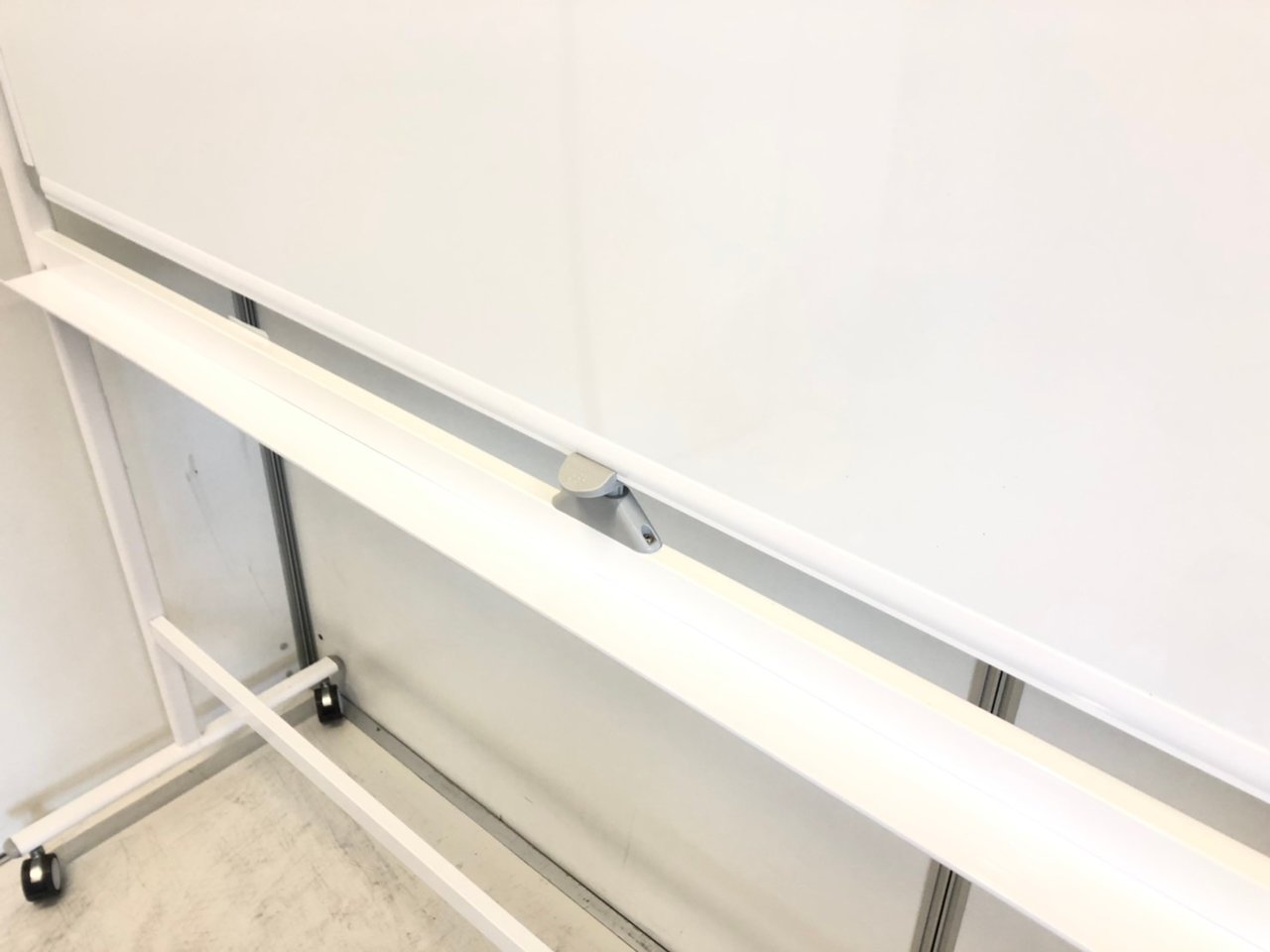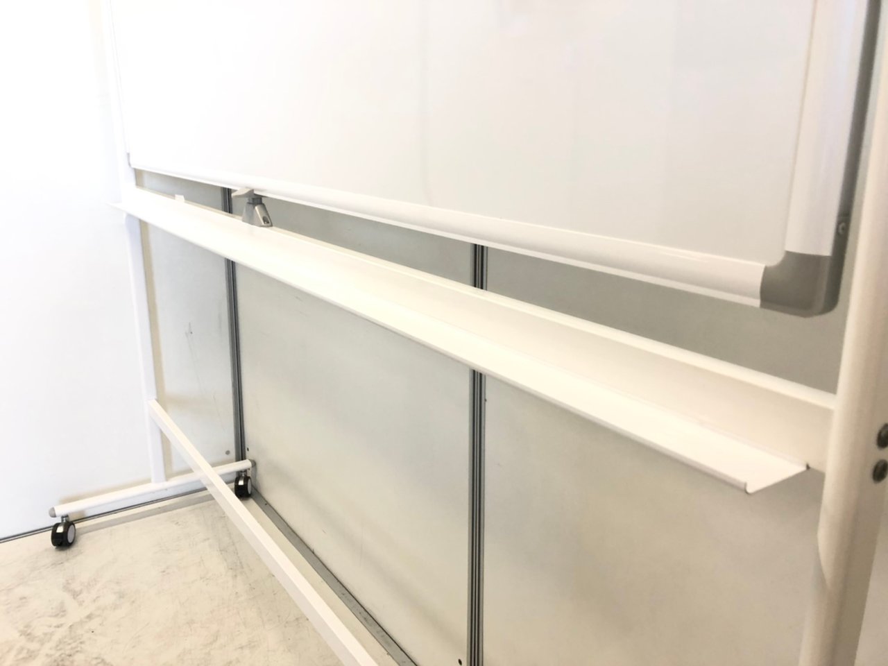 ホワイトボードの板面は、回転して両面を簡単に切り替えることができ、固定も簡単にできます。