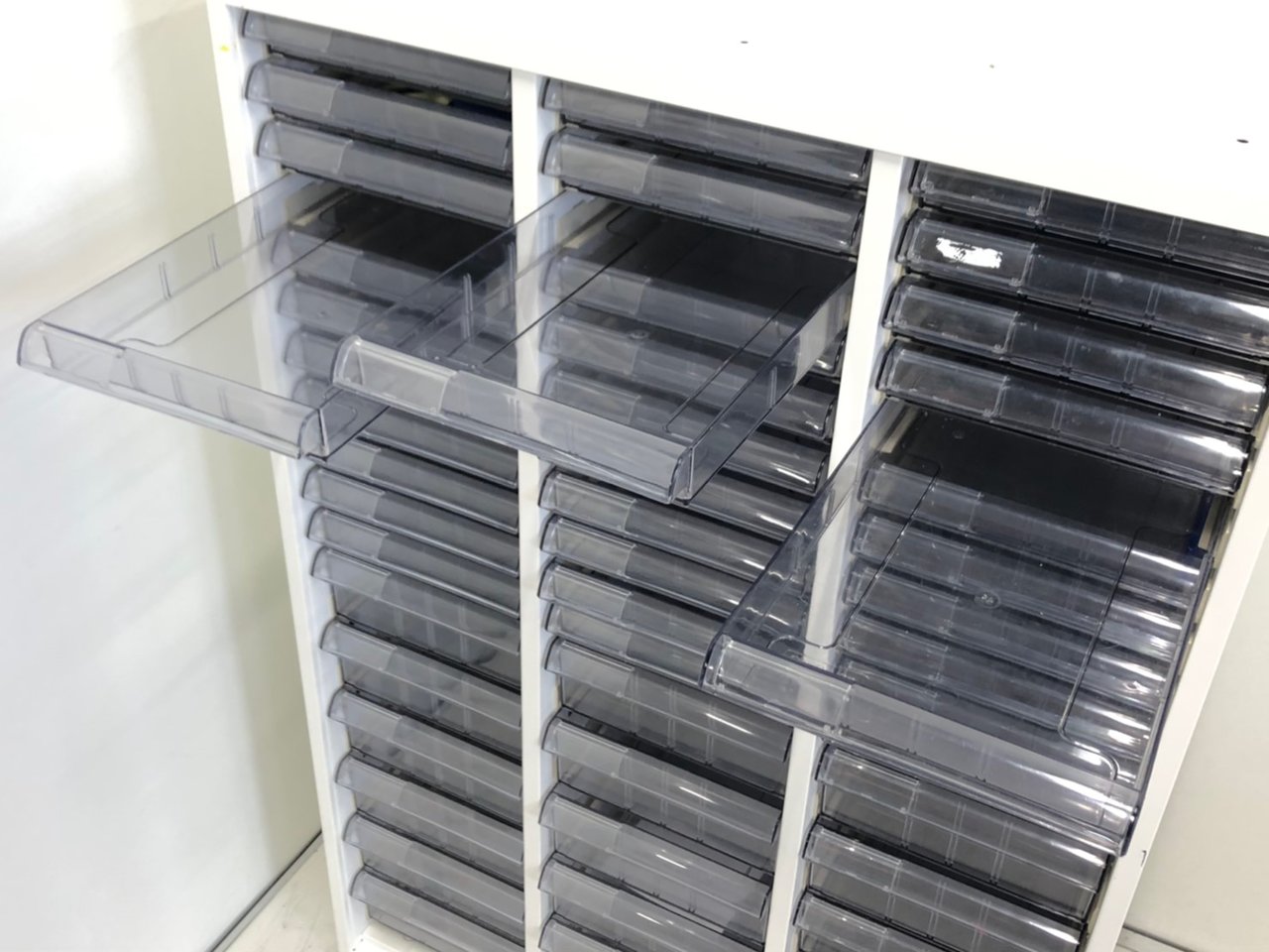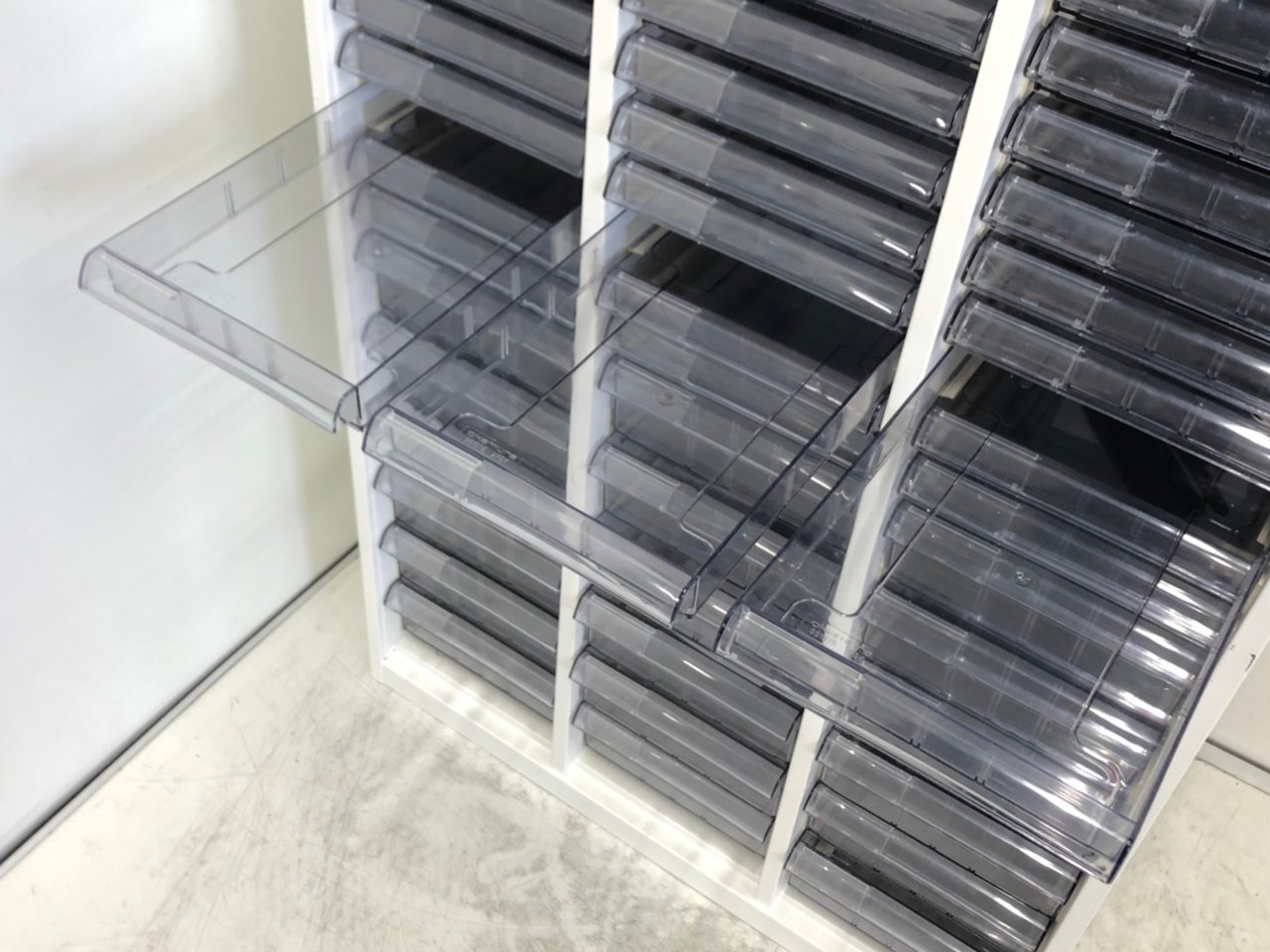 - 多数不具合あり引出の開閉不可、施錠不可、棚板無しといったその書庫の本来の効用を果たすための機能以外の多数が使用不可(例、扉、引出の開閉がしづらいなどがある。 )