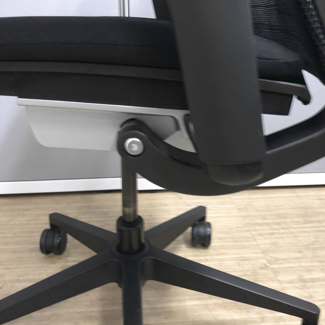 快適な座り心地に不可欠な調節機能である、上下昇降、座面の奥行き調整、リクライニングなどを備えており、操作もわかりやすく好評です。 特に、座面の奥行きは、座面下の左右に通った細いバーで調整でき、座ったままで軽やかに滑るように調整が可能です。 価格面では、新品では高めですが、中古は流通も多く、定価の3割前後の価格で高級チェアの座り心地を手に入れることができます!