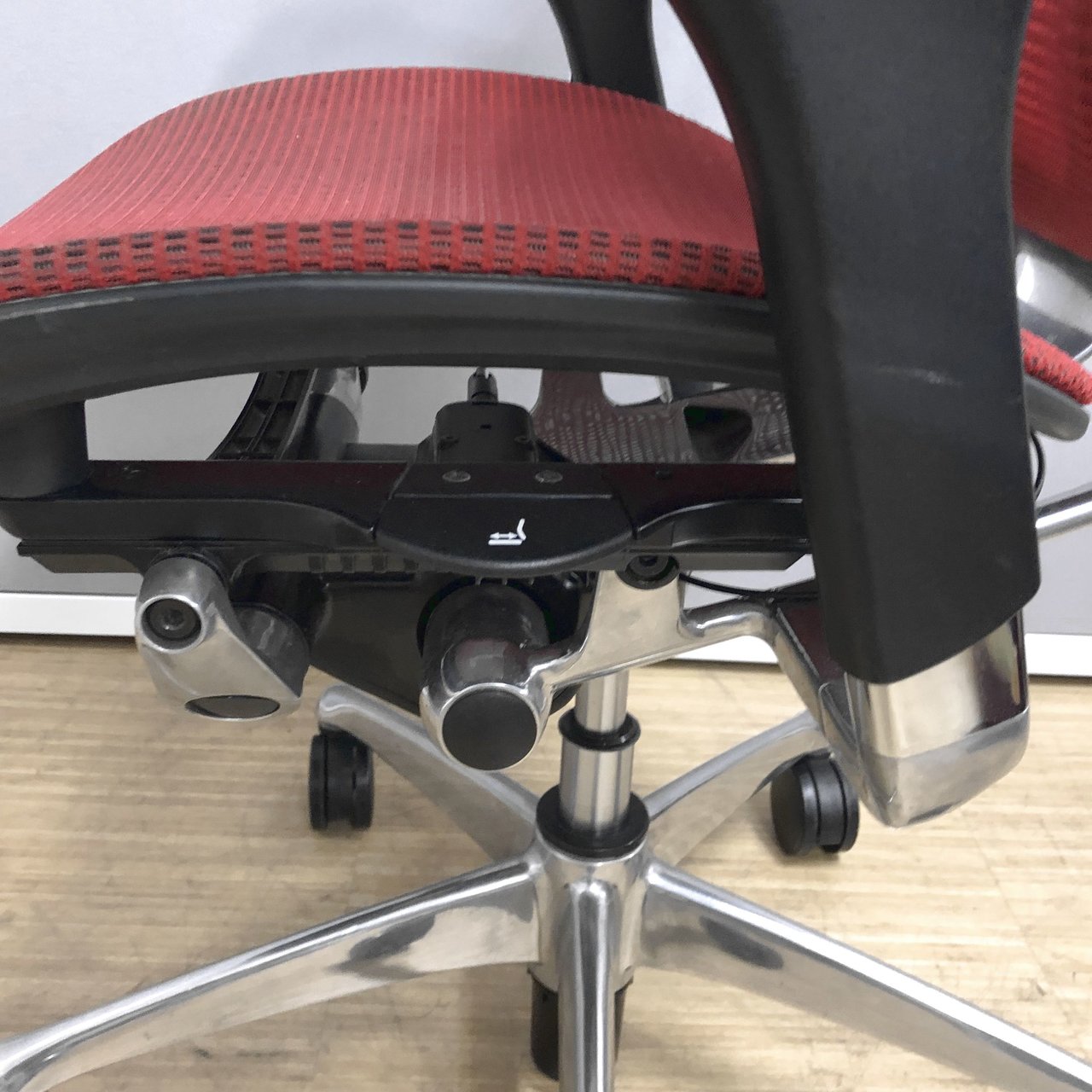 - 座面の前後スライド調整レバーで操作(前後50mm分調整で)できます。(グラデーションサポートメッシュタイプを除く)