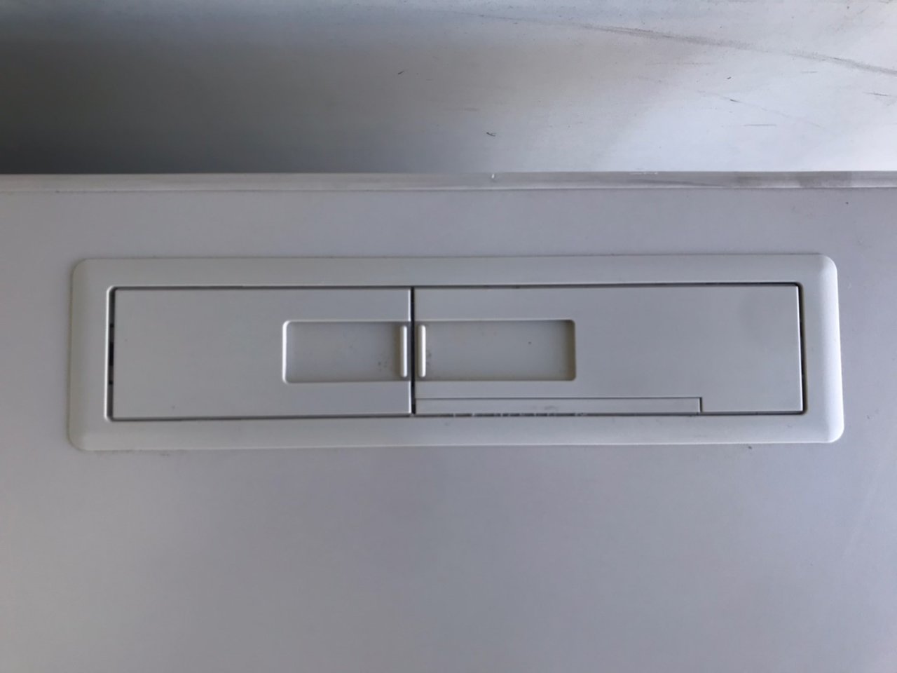 天板にはビジネスフォンやパソコンの配線を通す穴があり、