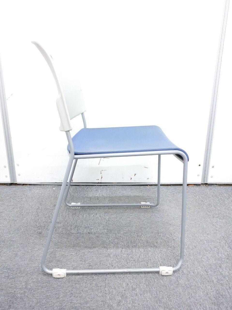 【大特価!!】4脚1セット!内田洋行製のシンプルなスタッキングチェア!【鮮やかブルー色!】- 神戸・三宮店
