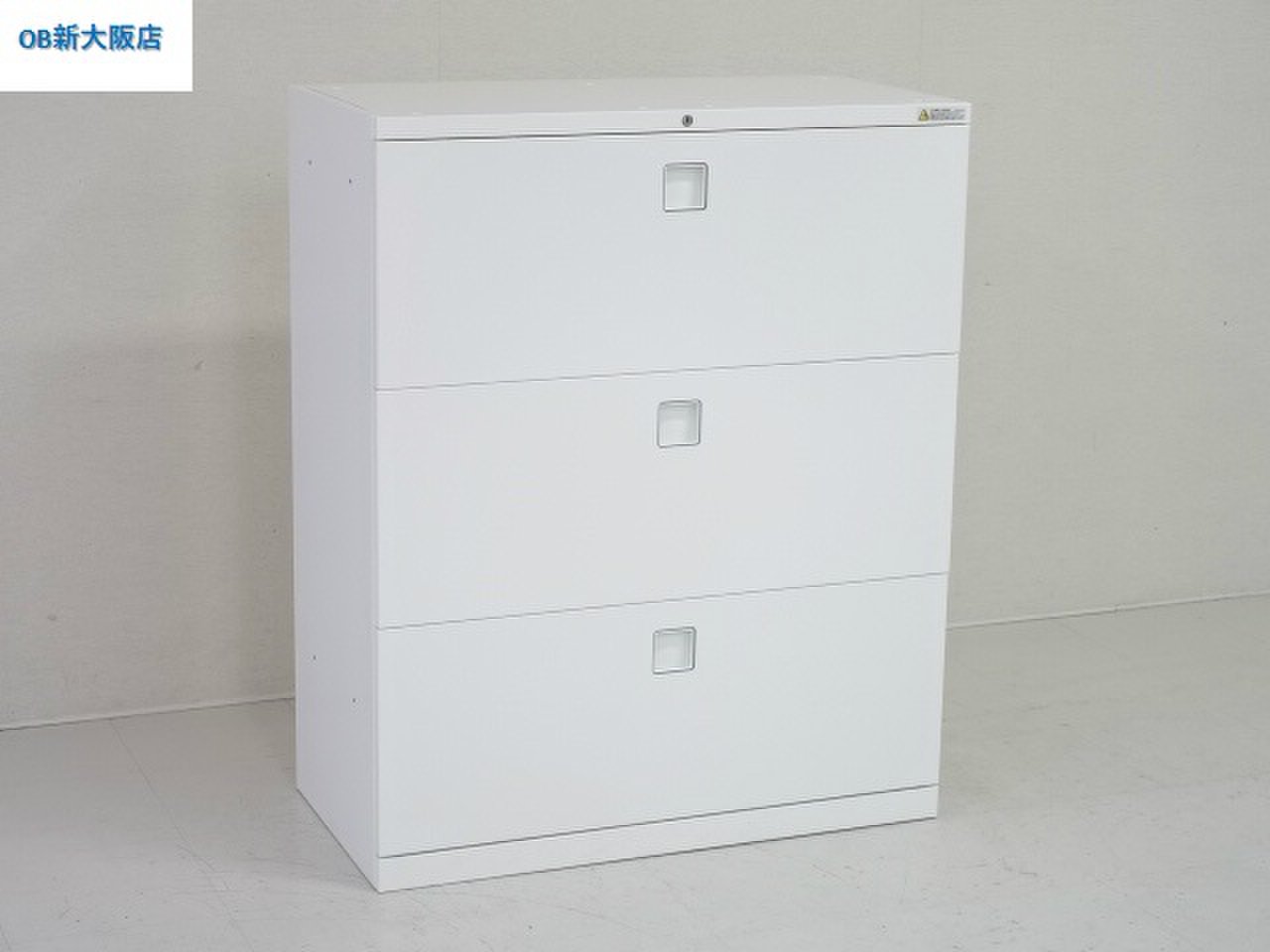 オカムラ レクトライン 3段ラテラル書庫 ホワイト天板 シリンダー錠 鍵付き ※取っ手部分に若干日焼けあり