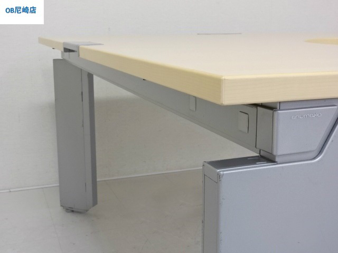 【定価約30万円程度】オカムラ プロユニットシリーズ L字型デスク 天板ネオウッドライト×脚ホワイト W1600×D1600の広々サイズ 限定1台入荷