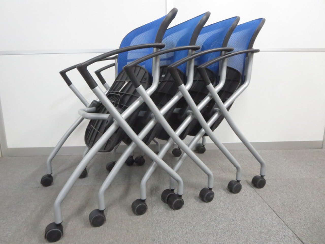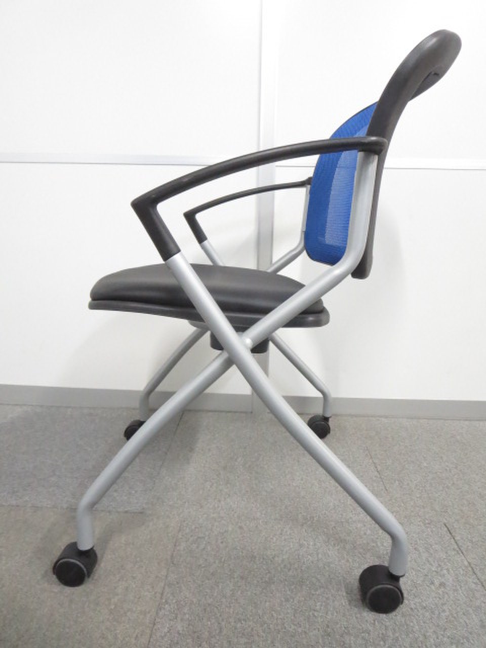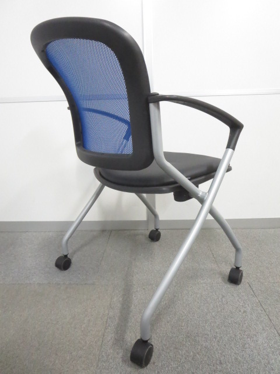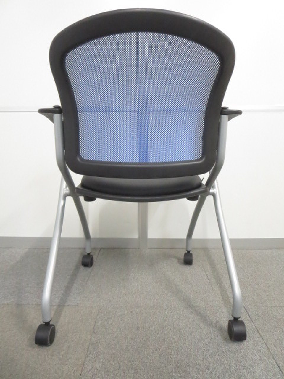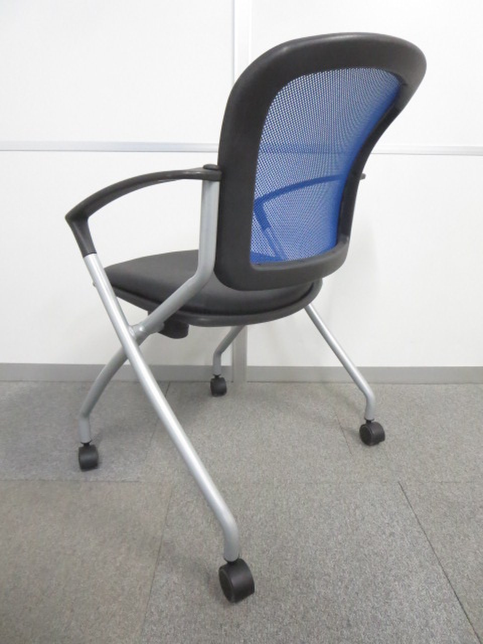 【状態良好!肘付でリラックス!】■ネスティングチェア ブルー 背面メッシュ!- 川崎店