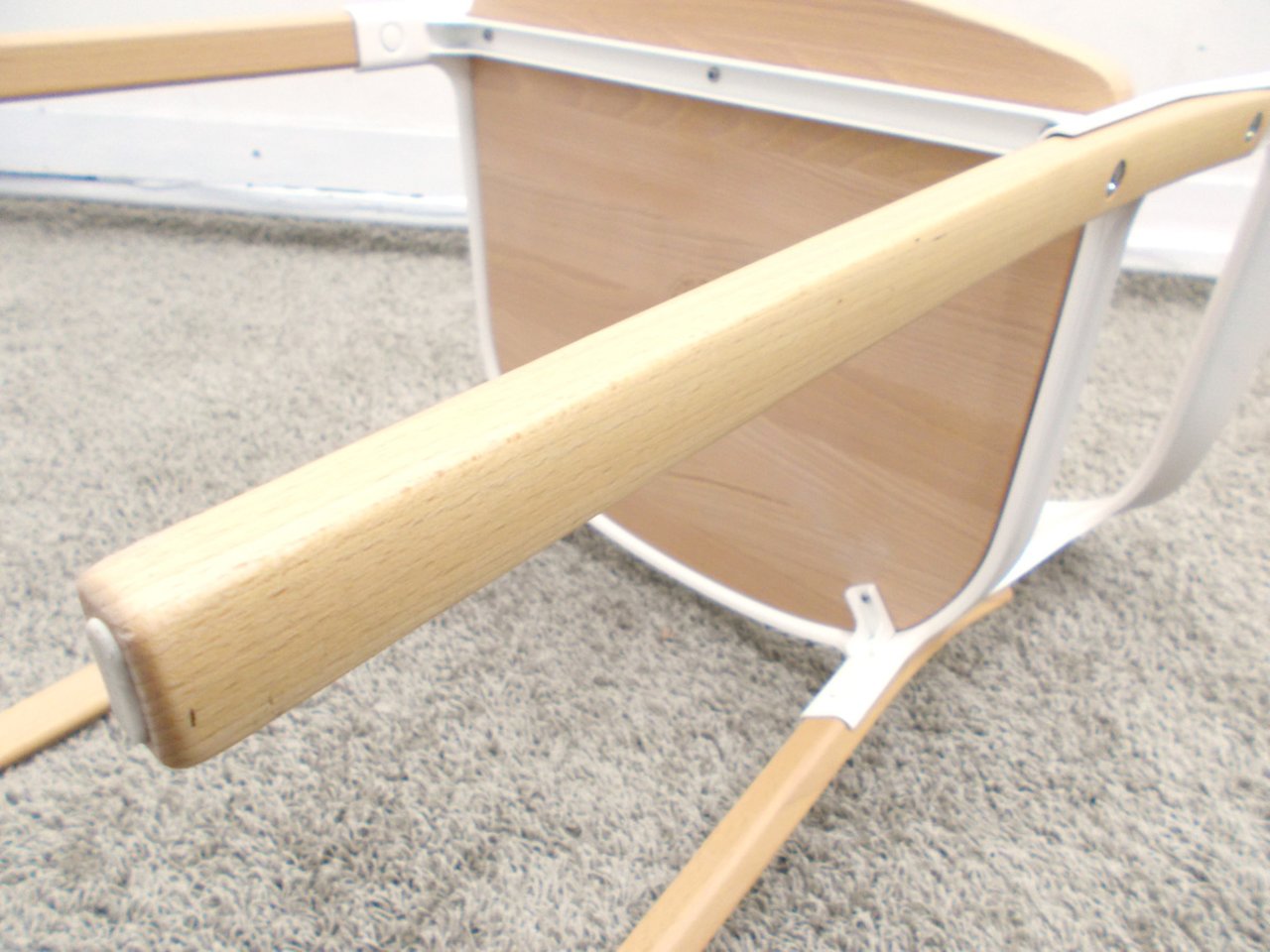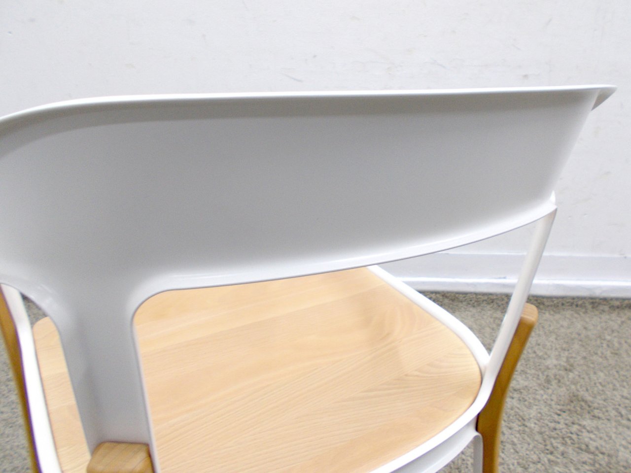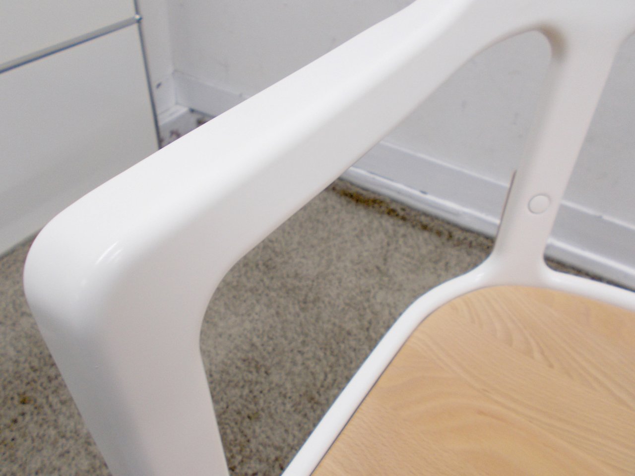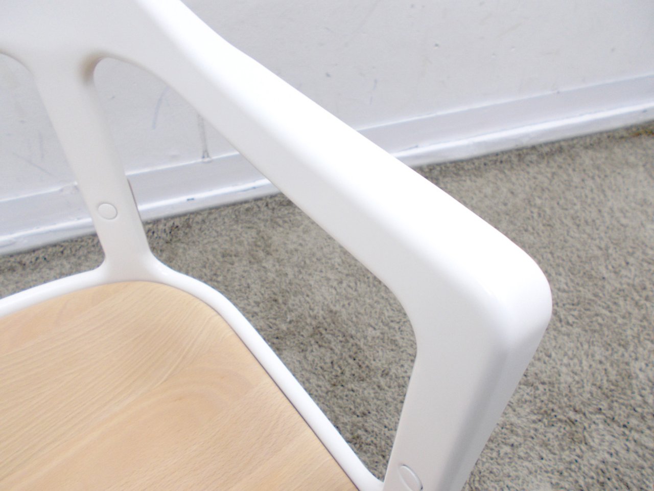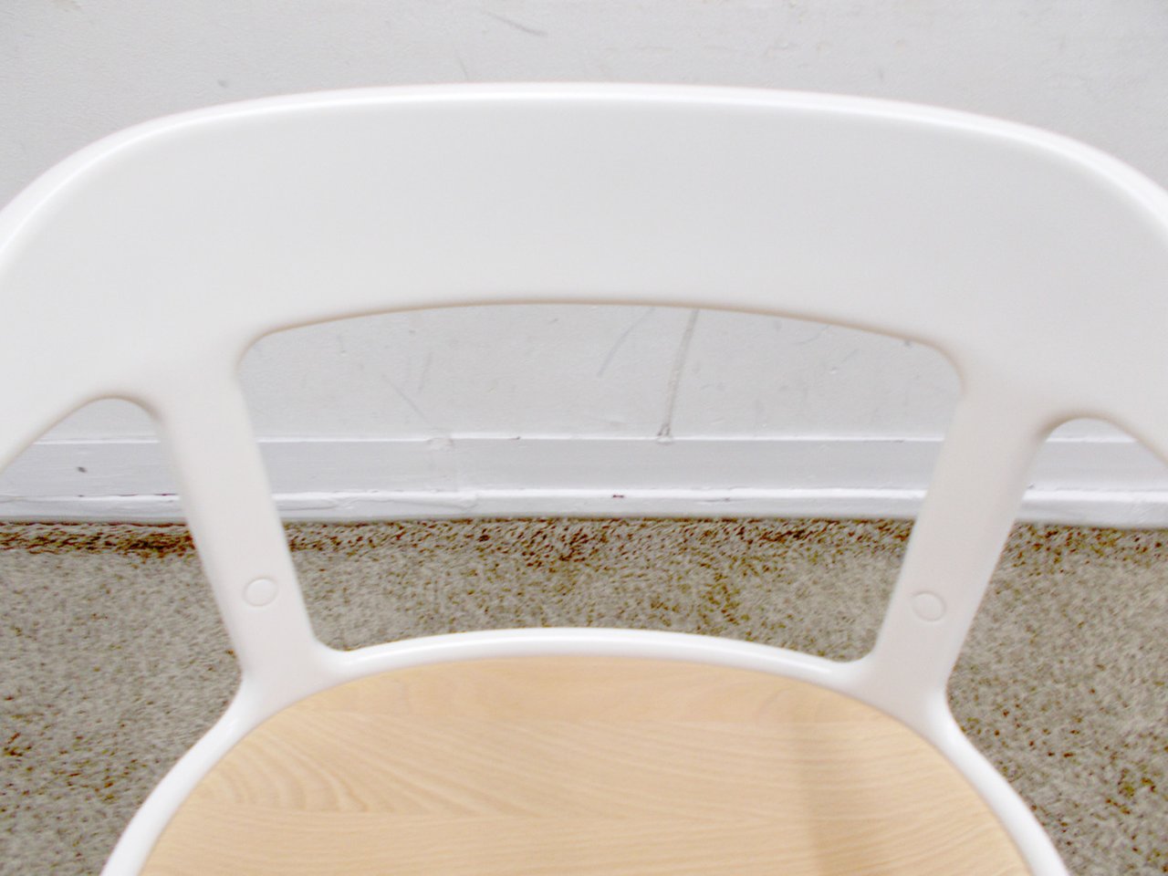 - かなり強い濃い黄ばみ・変色が商品全体にある。(例、座面・背もたれ、脚部等にある。)