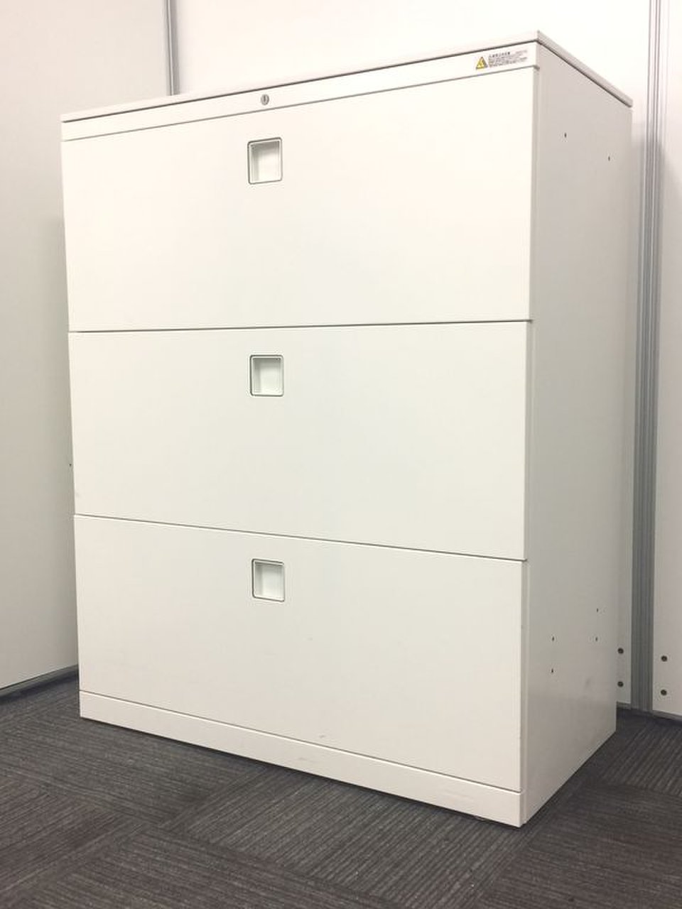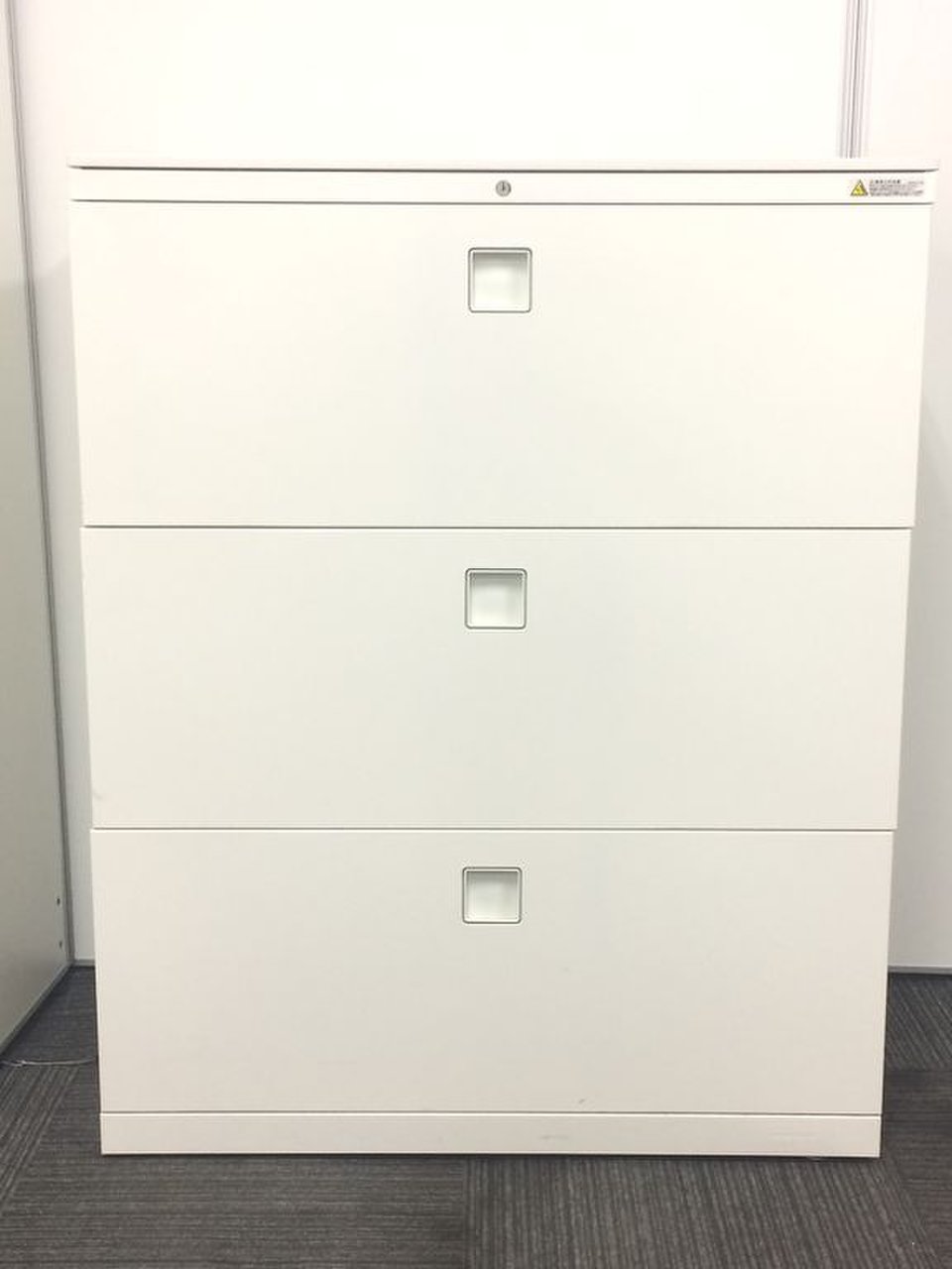 【ファイル収納にオススメ!高品質で使いやすい人気シリーズの3段ラテラル書庫!】■オカムラ(okamura)製 レクトラインシリーズ 3段ラテラル書庫 ローキャビネット H1100㎜ ■ホワイト ■シリンダー鍵 ■天板付き(天板:ホワイト) ※日焼け有