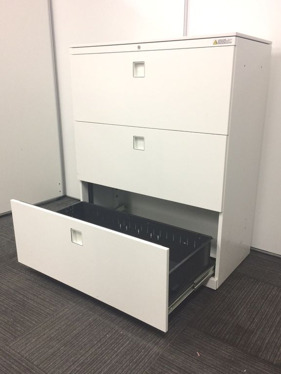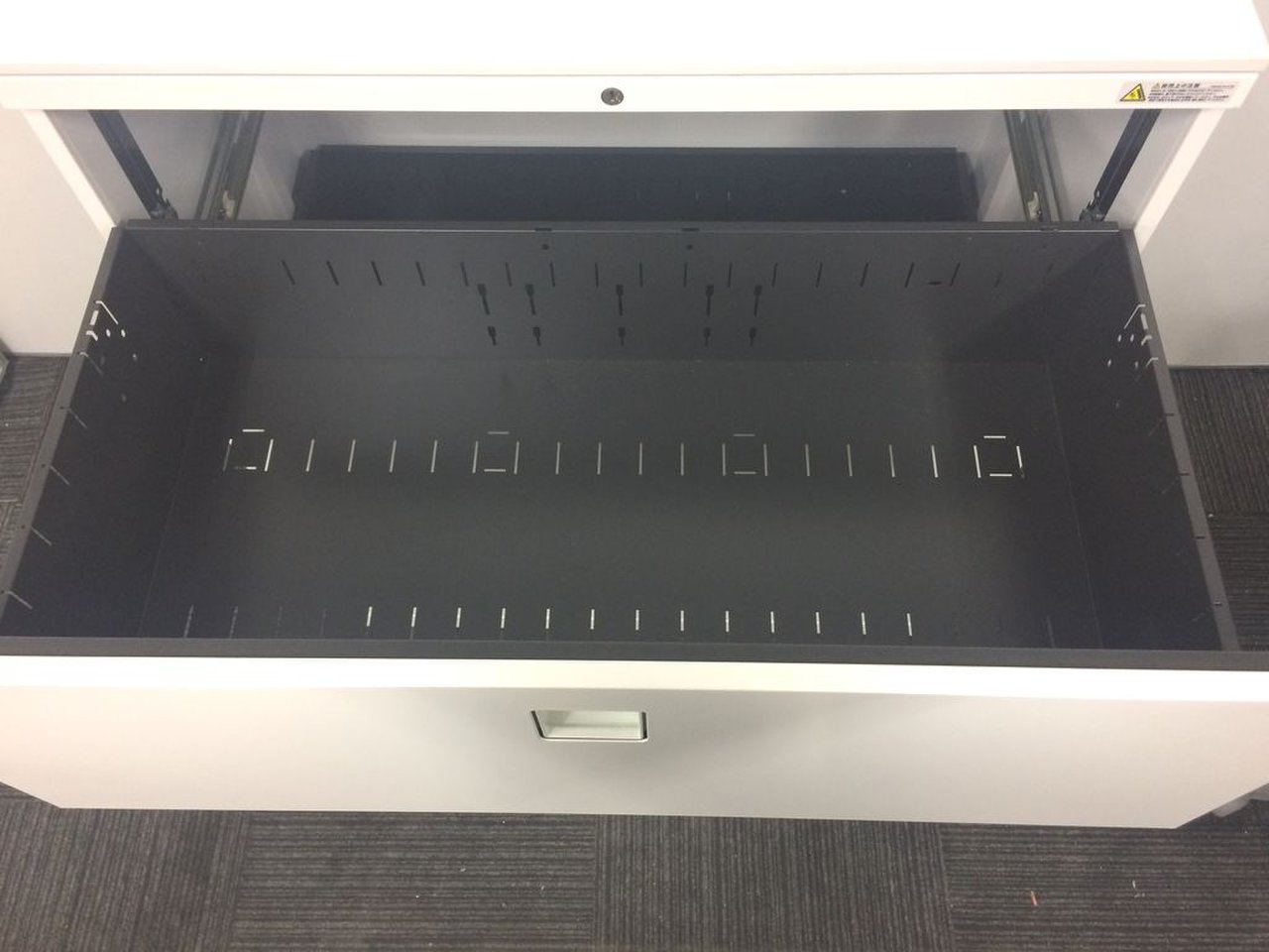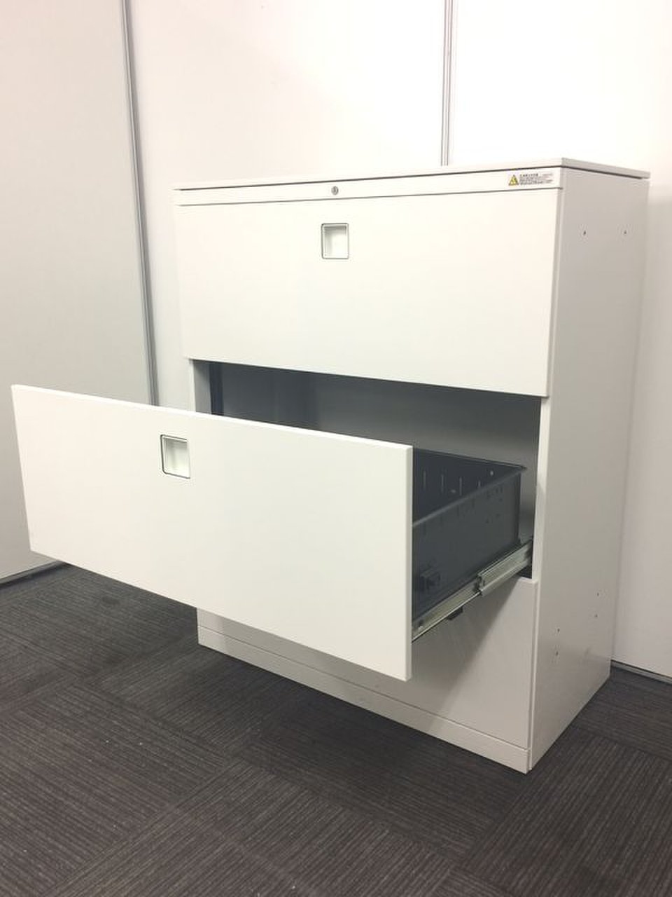 【オフィスの必需品!大容量の三段キャビネット!】■オカムラ(okamura)製 レクトラインシリーズ 3段ラテラル ローキャビネット ■天板/ベース付 ■シリンダー錠 ■ホワイト 【弊社使用欄:A01037187】