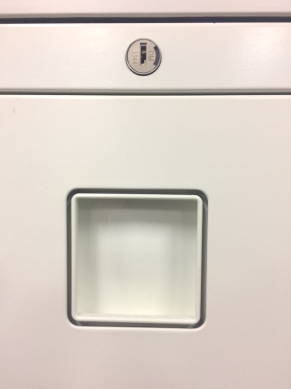 オカムラ レクトライン 3段ラテラル書庫 ホワイト天板 シリンダー錠 鍵付き ※取っ手部分に若干日焼けあり