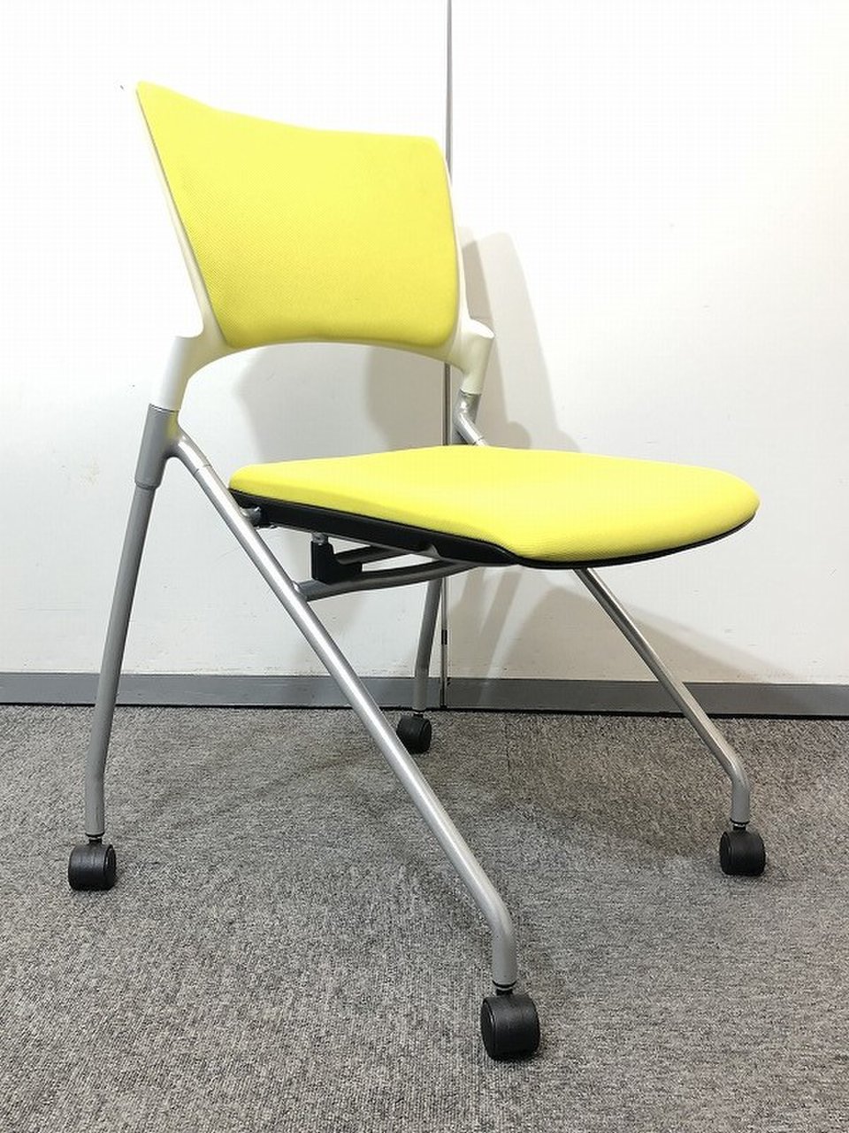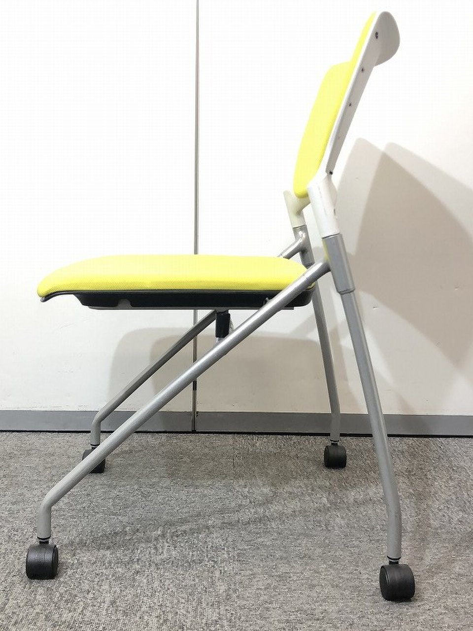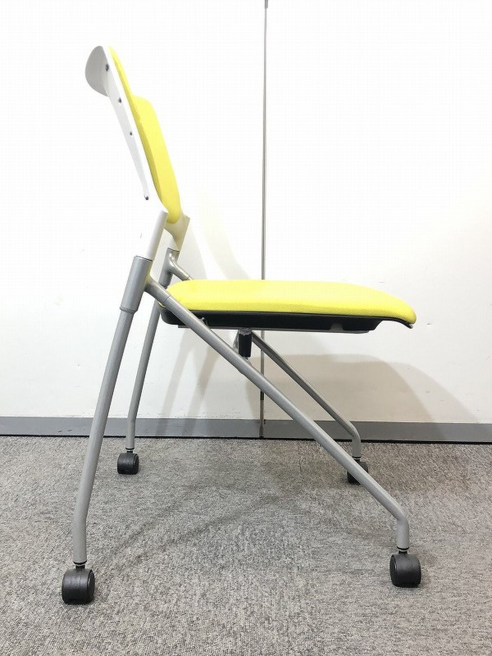 【ロット商品】鮮やかライトグリーン!座面を跳ね上げるネスティングタイプ|キャスター付【AM在庫】- 新大阪店