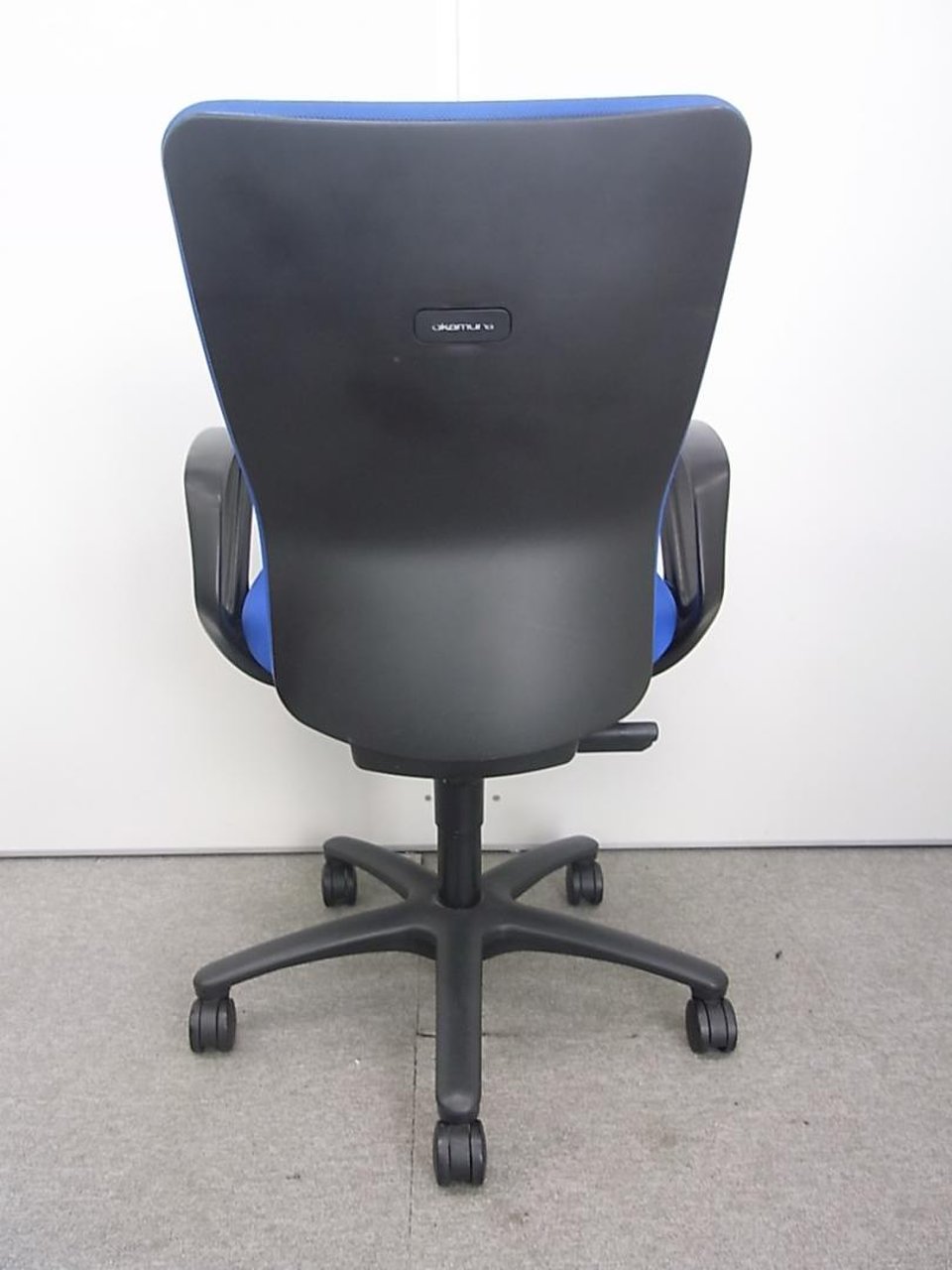 定番のオカムラ製のチェアが入荷!厚めのクッションで座り心地抜群! ■オカムラ/カロッツァ/ブルー ブラックシェル リング肘