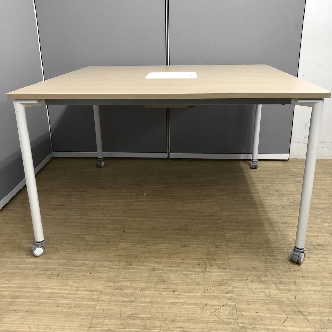【フレキシブルに使える!】■イトーキ製 グループテーブル 配線口あり W1200mm ナチュラル キャスター付【スクエアテーブル】【ワークテーブル】- 川崎店