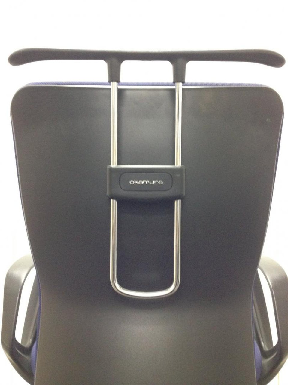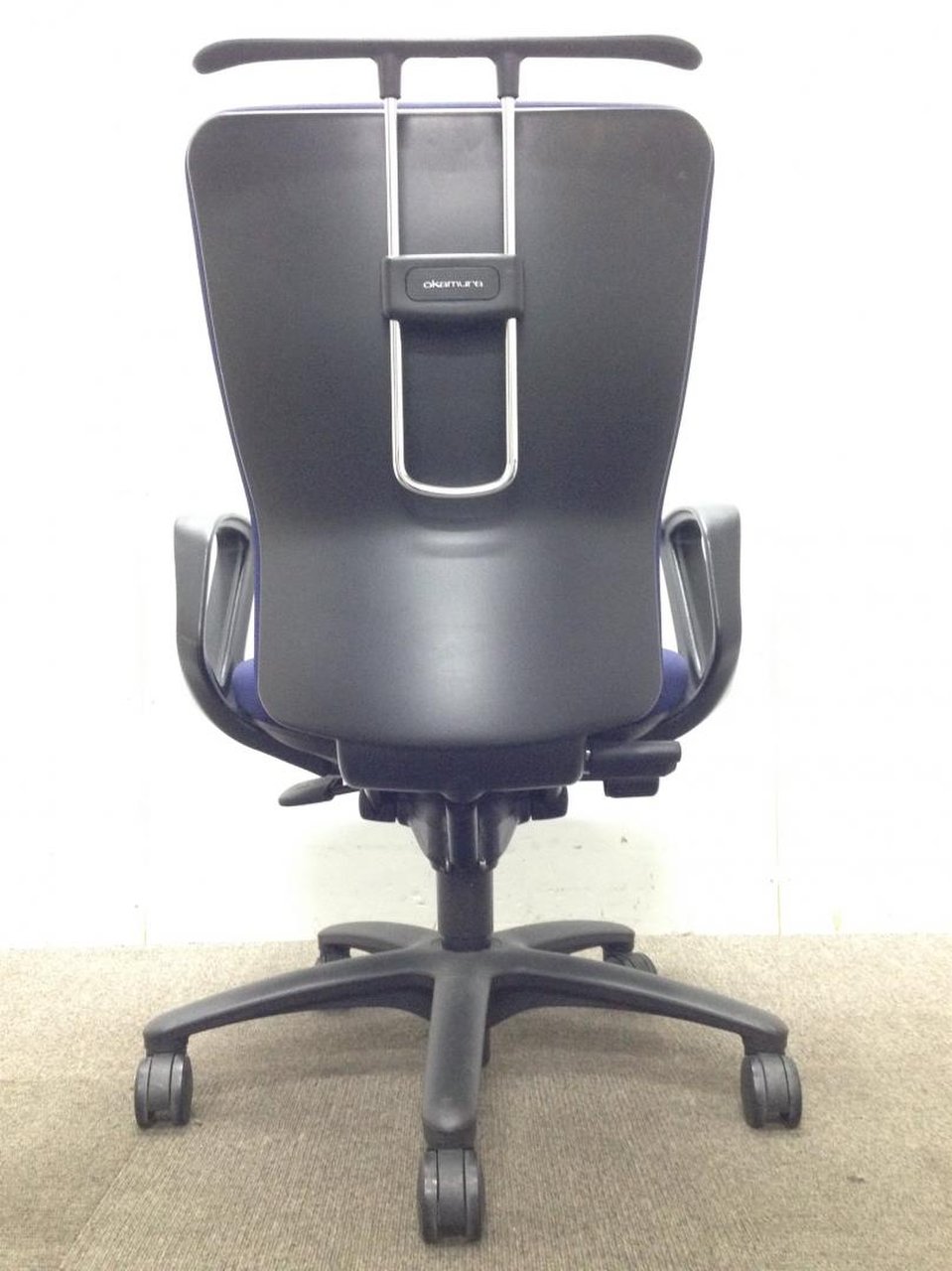 【在庫入替品】【使用感強めのためお安く!】【2脚限定】オカムラ製 カロッツァシリーズ ブルー ブラックシェル デザインアーム※固定肘 シンプルなデザインと高反発なクッションが人気! 肘付きハイバックチェア!! オフィスバスターズ 梅田本店