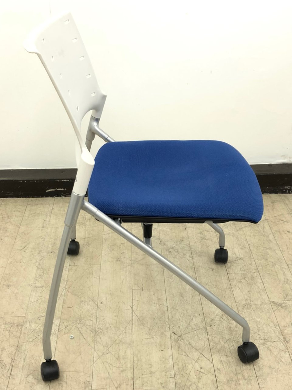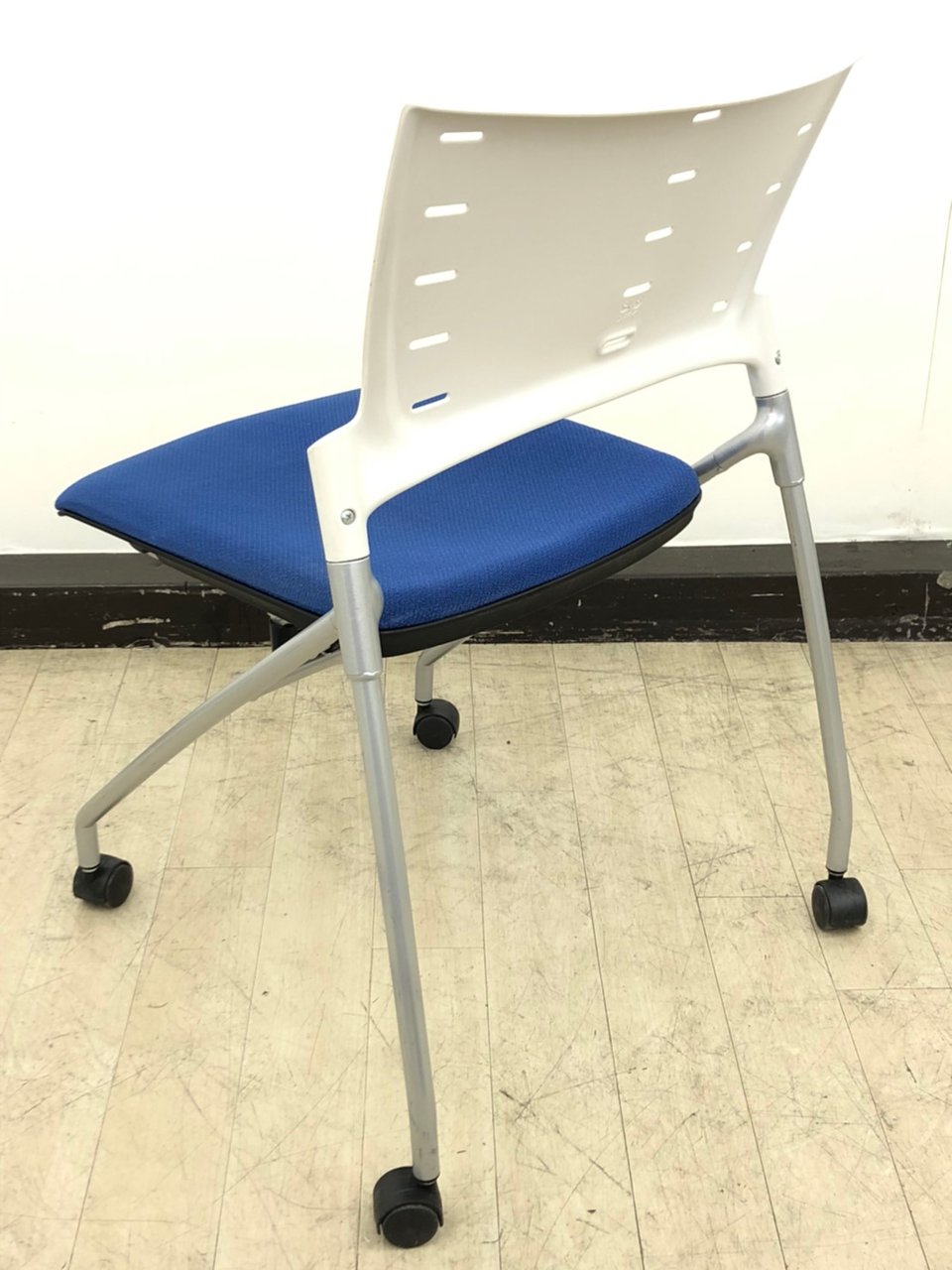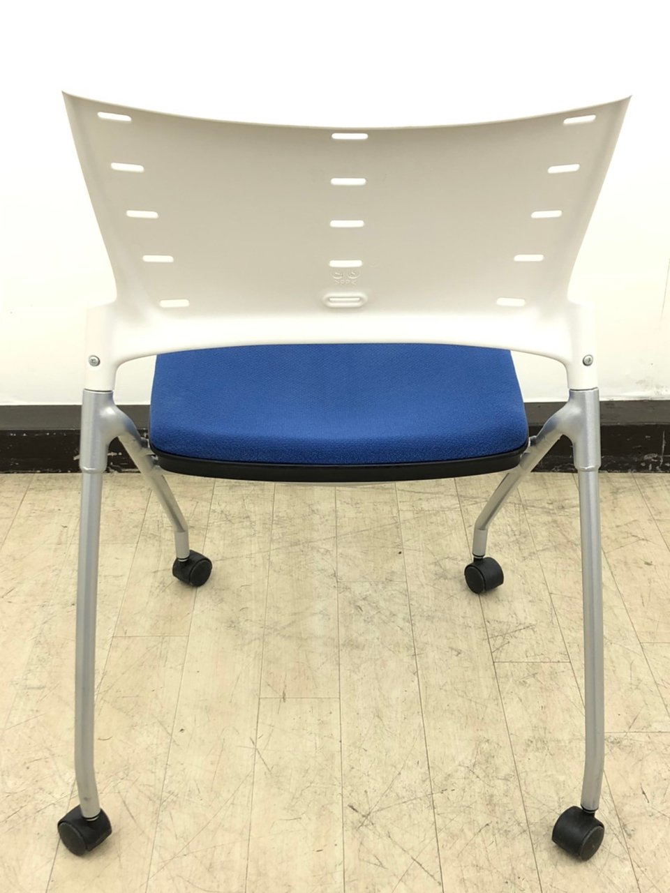 【定価6万円】【ソフトベンディングシェルが背を優しく受け止める!】■イトーキ(ITOKI) マノスチェア(MANOSS) 肘無し スタッキングチェア ミーティングチェア ■背パッド付 ■キャスター脚 ■ブルー