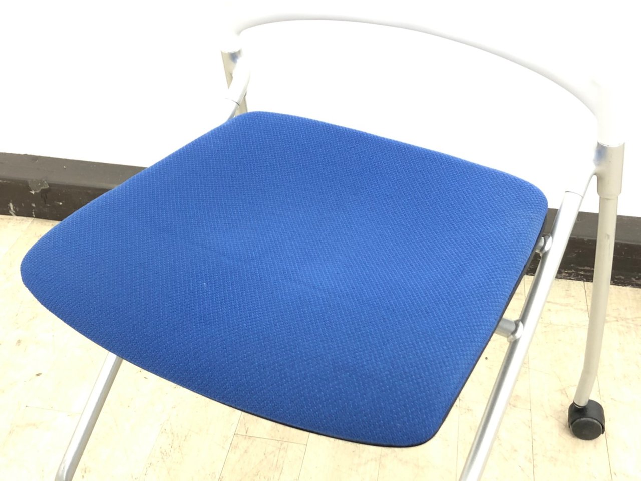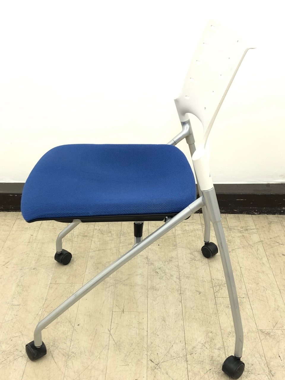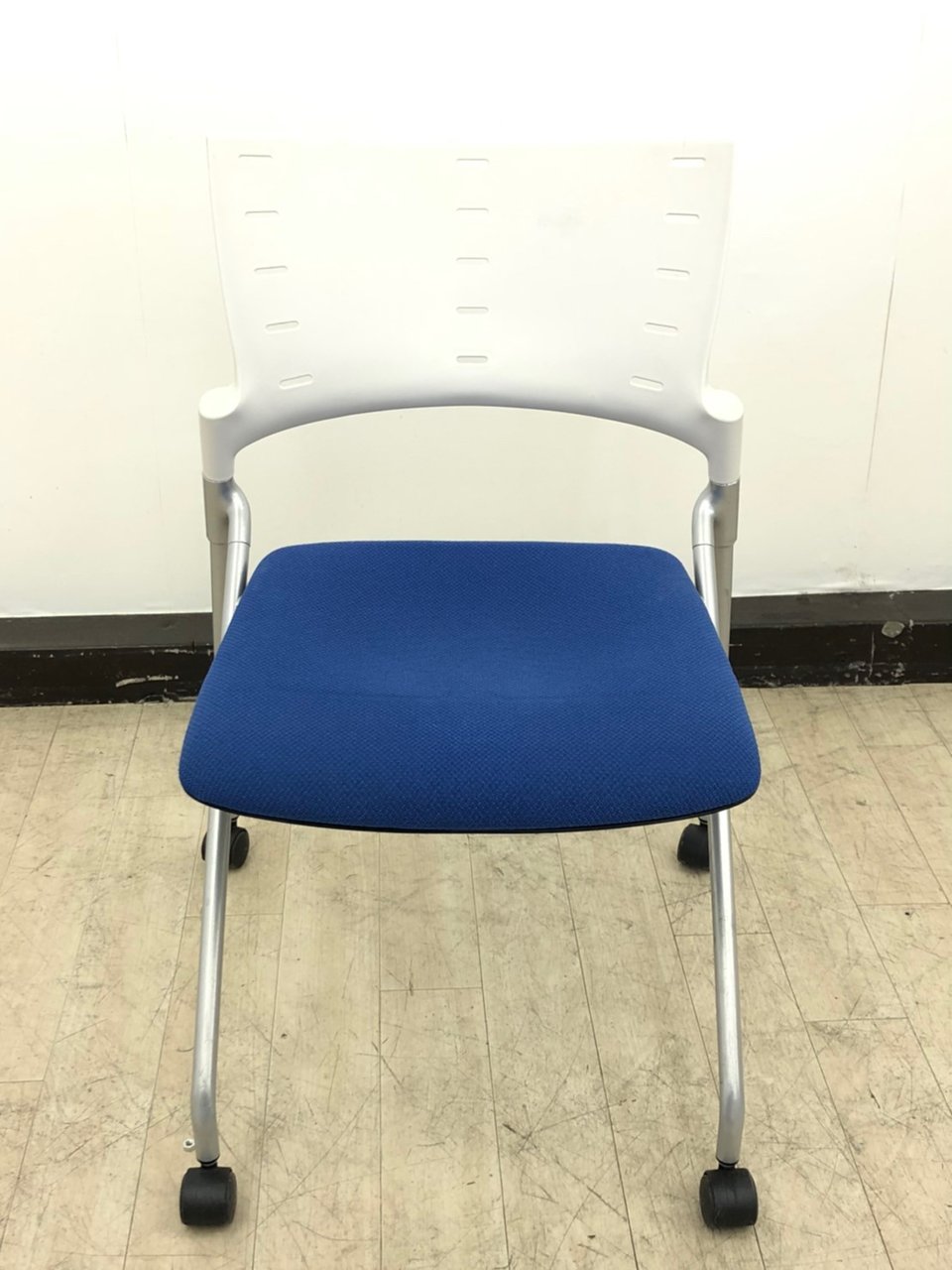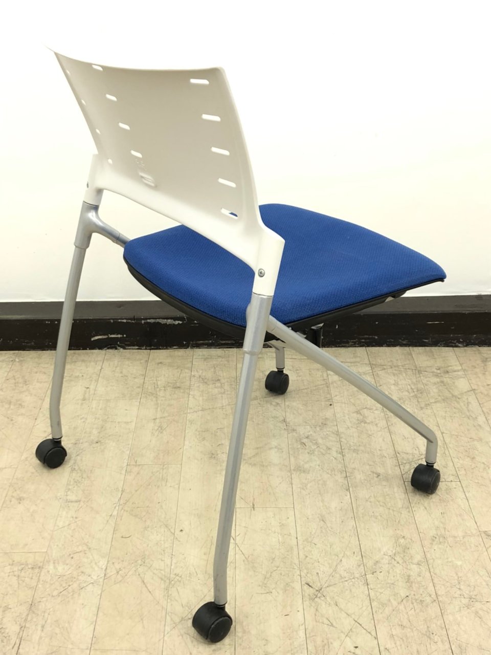 【定価6万円】【ソフトベンディングシェルが背を優しく受け止める!】■イトーキ(ITOKI) マノスチェア(MANOSS) 肘無し スタッキングチェア ミーティングチェア ■背パッド付 ■キャスター脚 ■ブルー