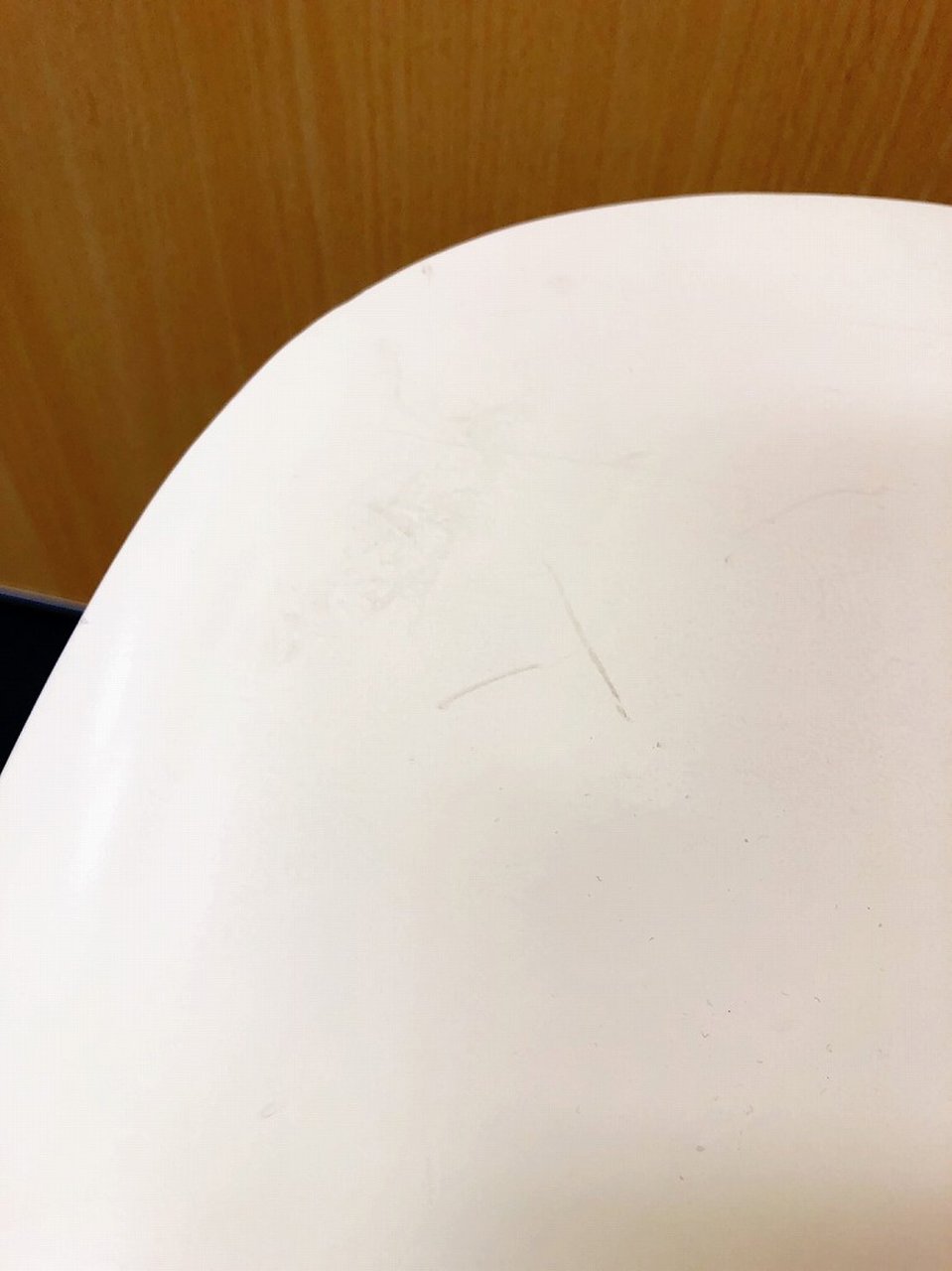 - 目立つ箇所あり傷・破れ・ほつれ・へたり・しわが多数または深い傷・破れ・ほつれ・へたり・しわが一部ある。※座面・背もたれ、シェル、脚部等にある。