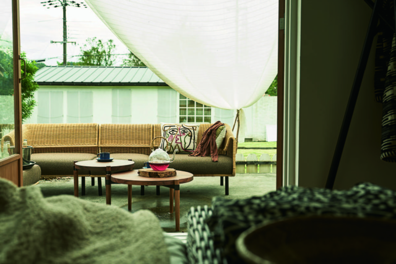 同シリーズの片肘ソファと組み合わせて2人掛けソファのように使用できます。
